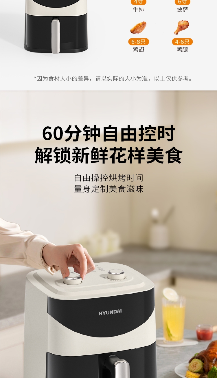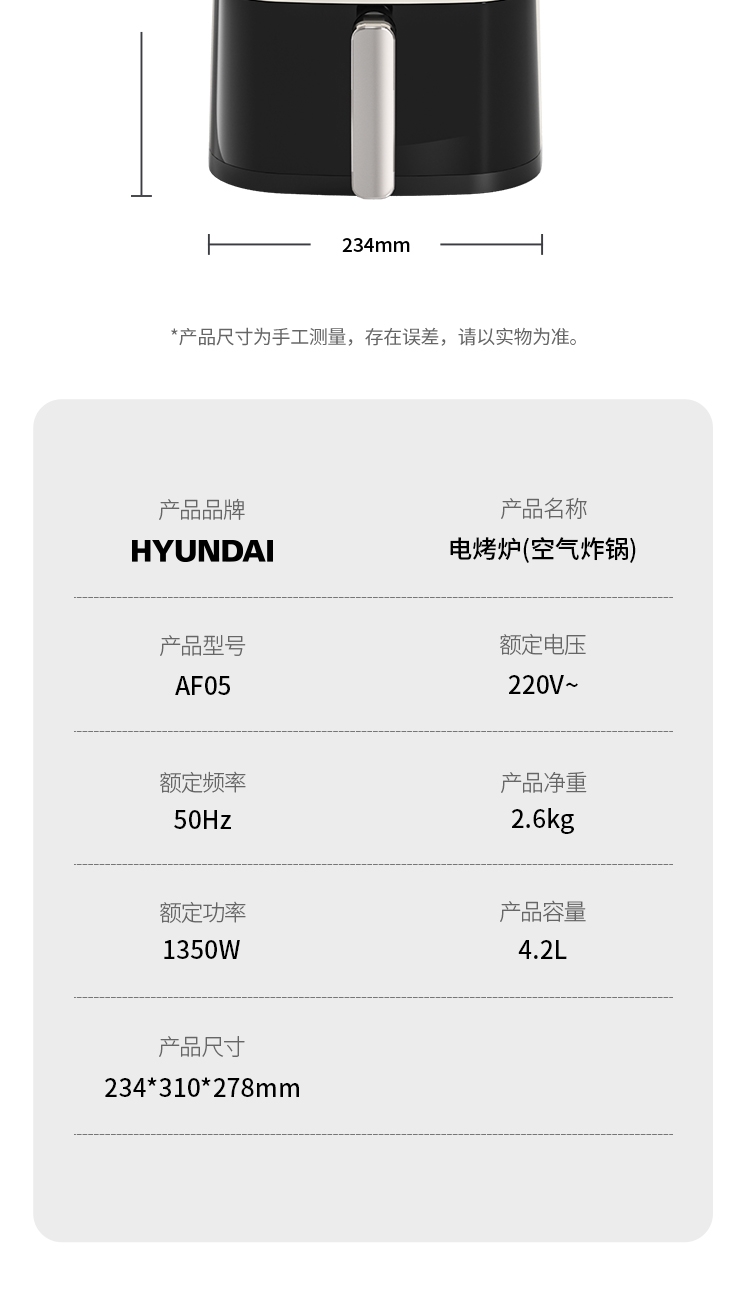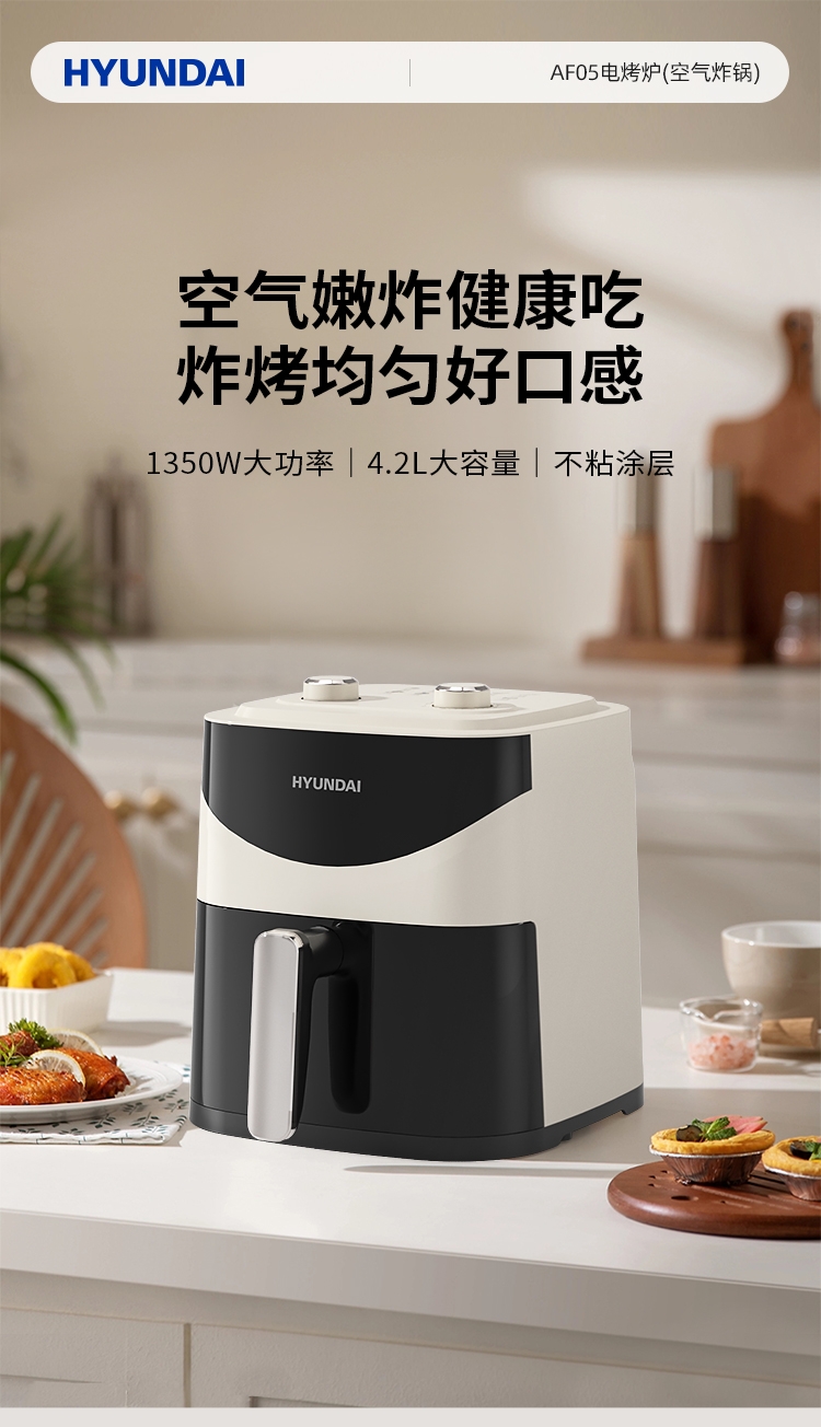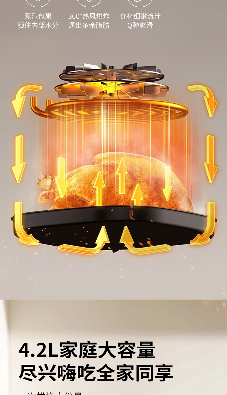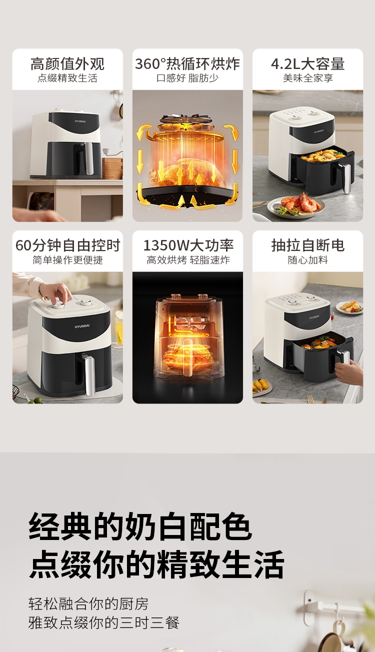 4.2L大容量 满足3-5人使用;调时恒温,0-60min、恒温200℃;抽篮断电记忆 抽出炸篮即断电