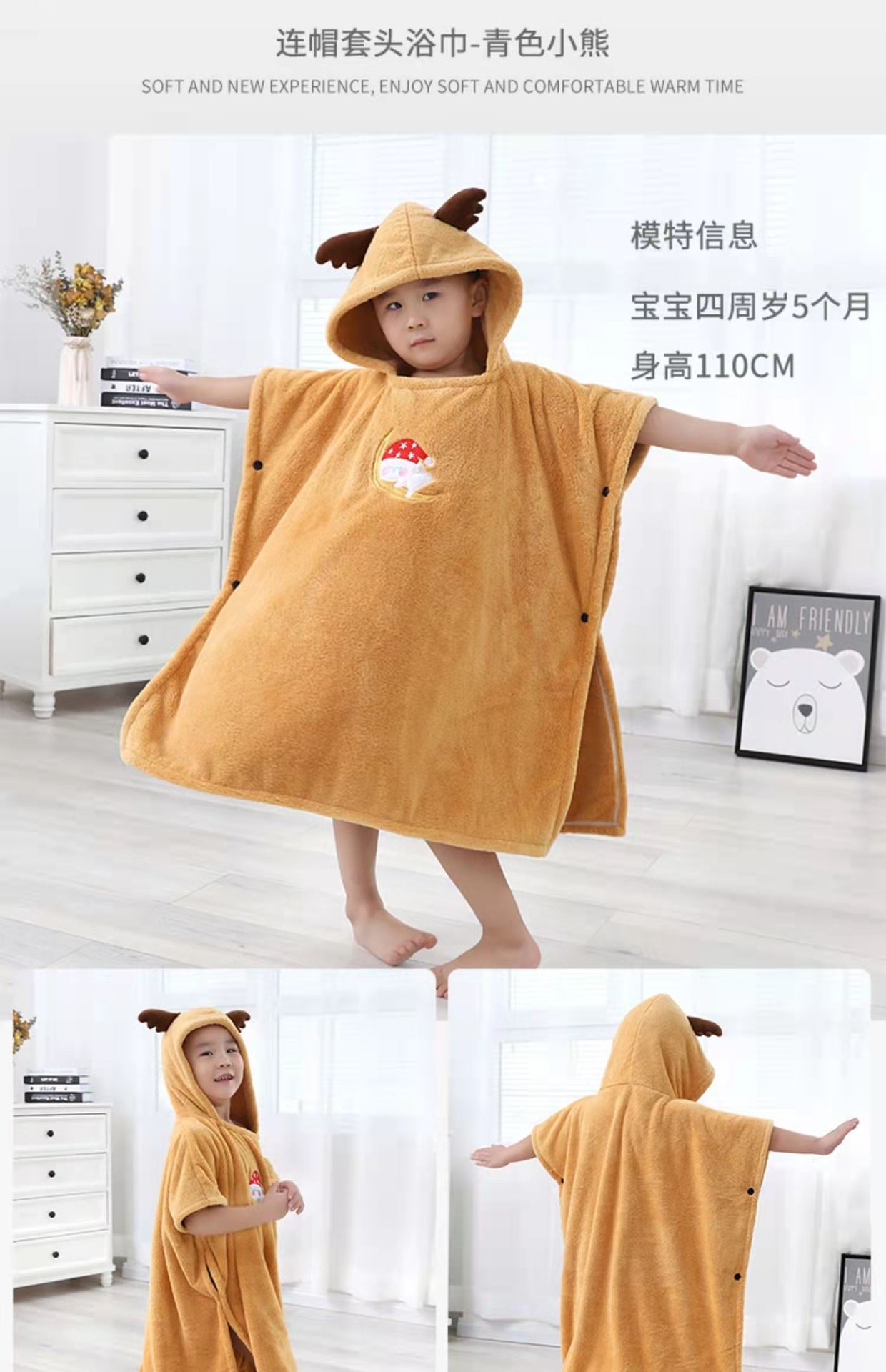 奥来纯 儿童卡通大浴巾婴童都跑浴袍浴裙