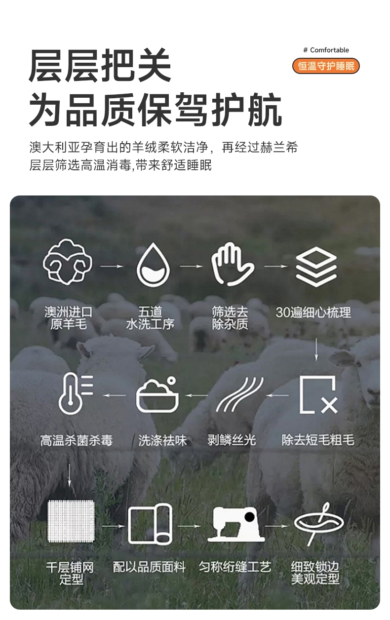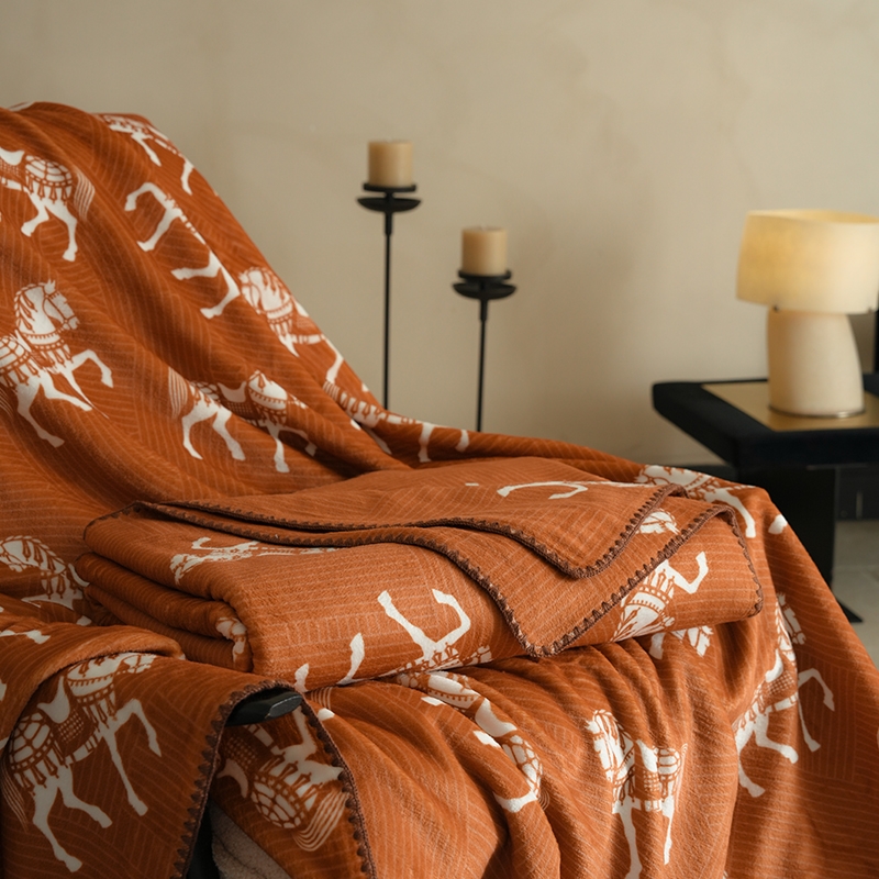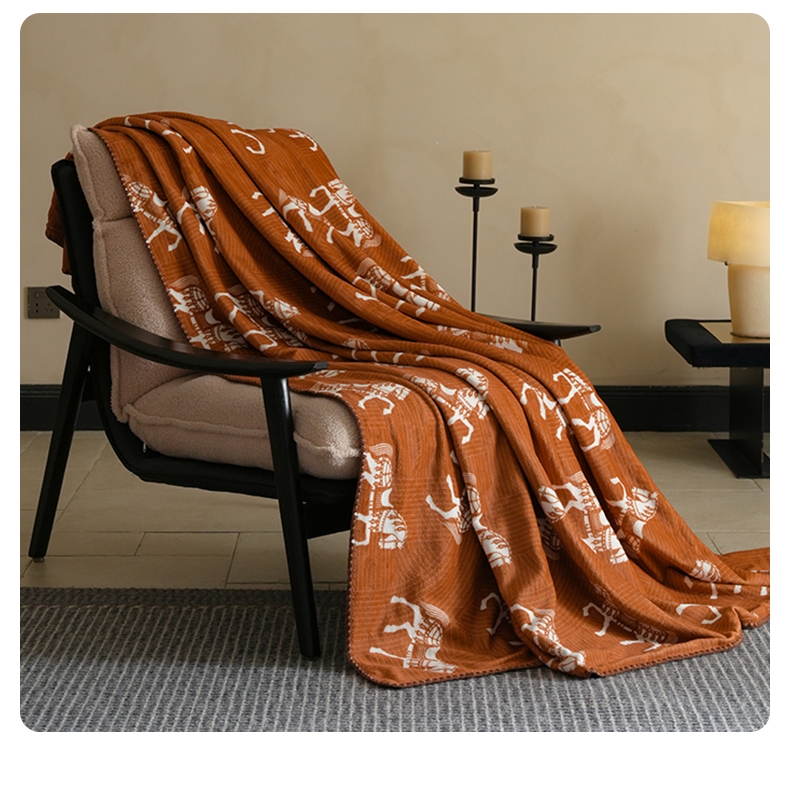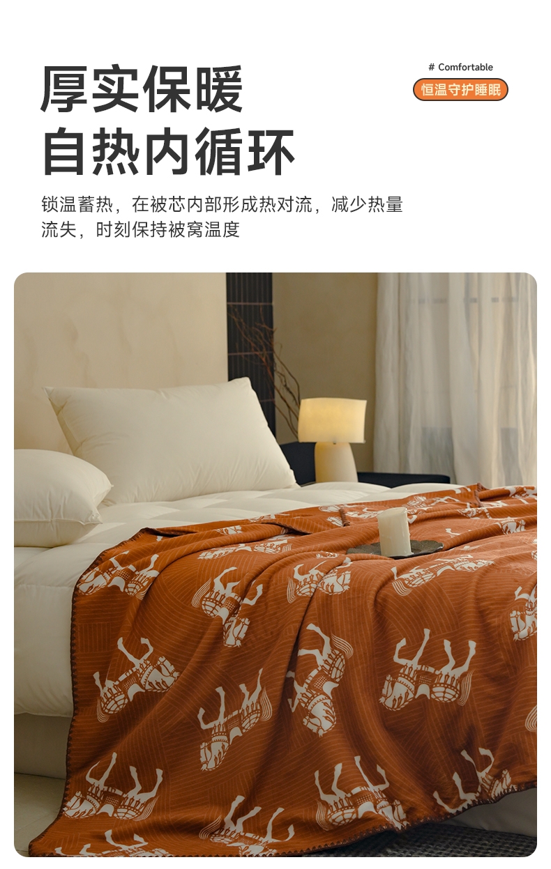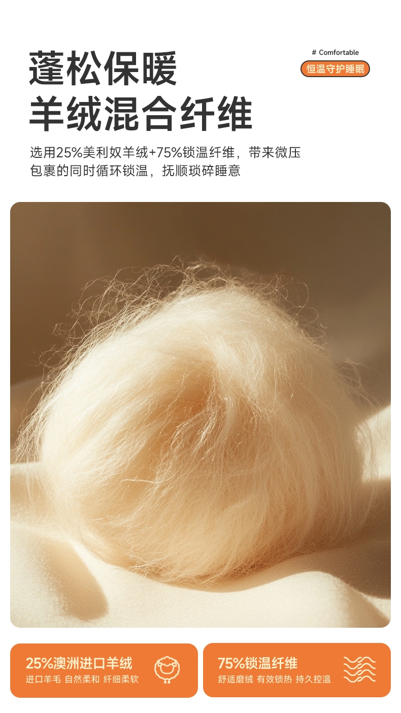 澳洲美利奴羊绒,材质柔软亲肤不起球;双层毯复合,保暖不臃肿,随时随地尽显优雅;简约轻奢花型,三角针锁边,凸显匠心工艺