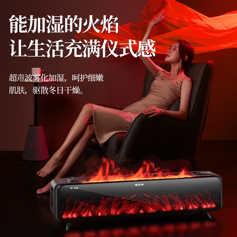 仿真火焰+炭火显示;超声波雾化加湿;天猫IOT、石墨烯发热体