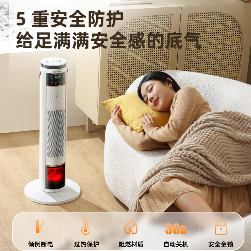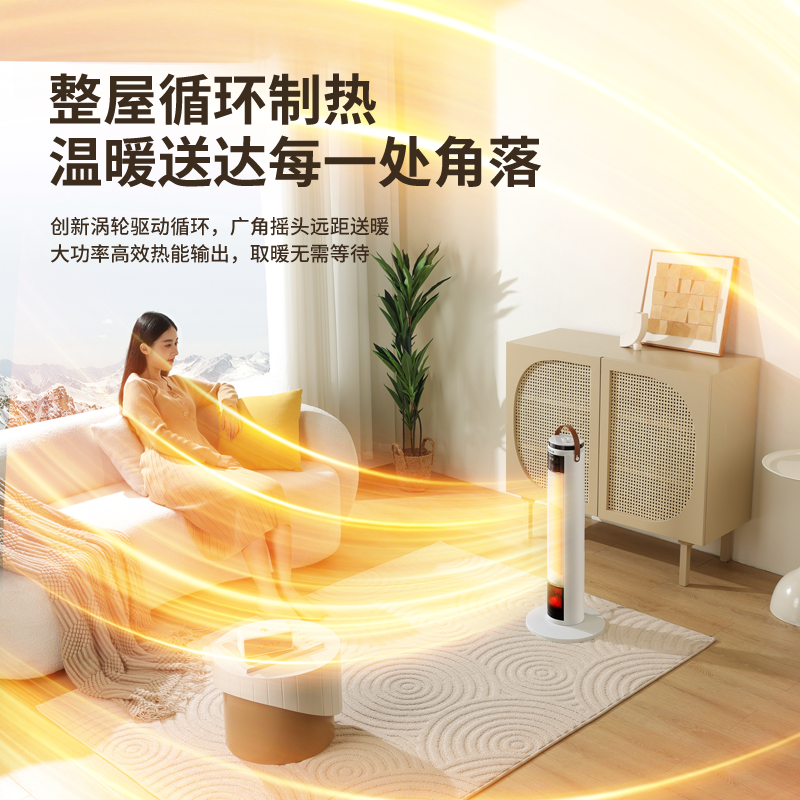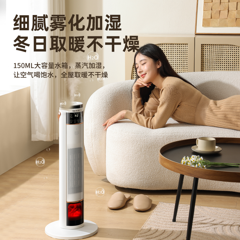 远程遥控,语音控制,触屏操作;PTC 陶瓷发热体,加热速度快;三档调节自定义温度,满足多种需求