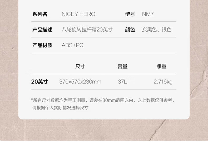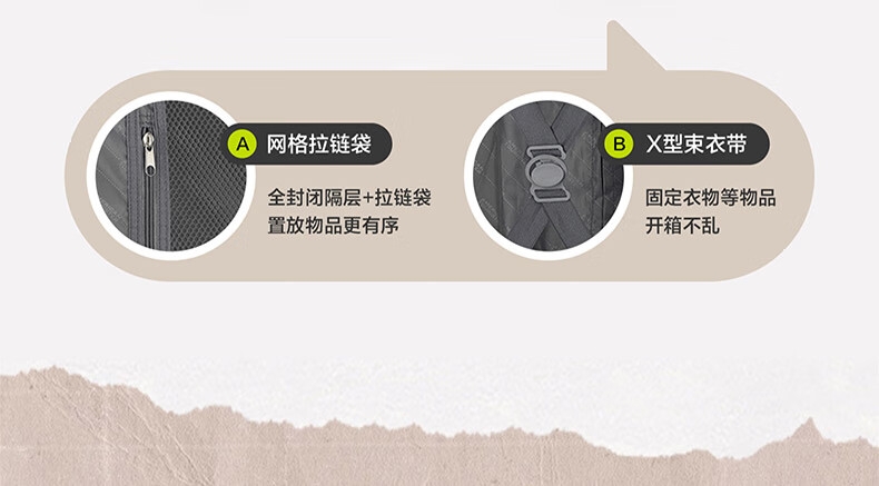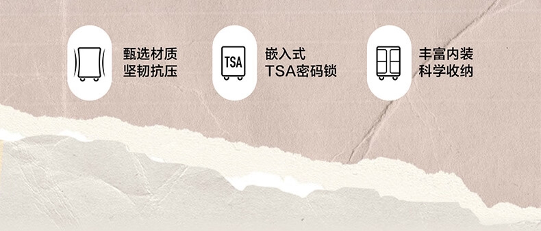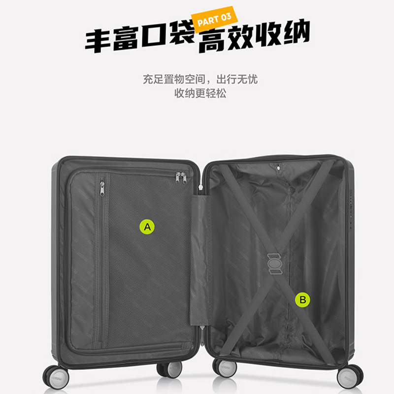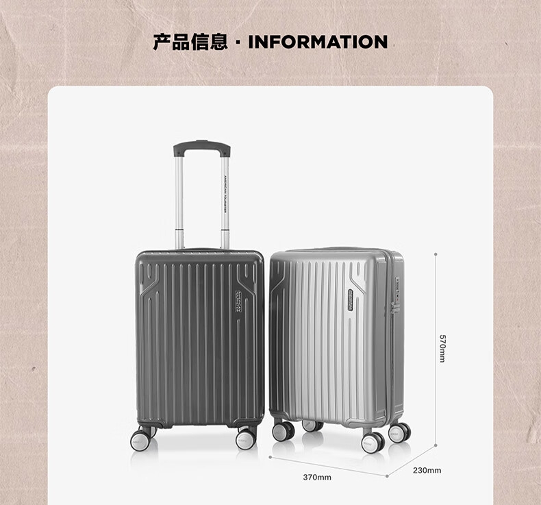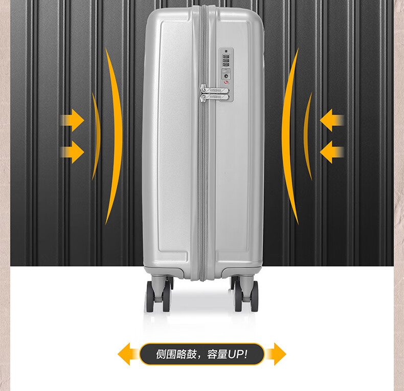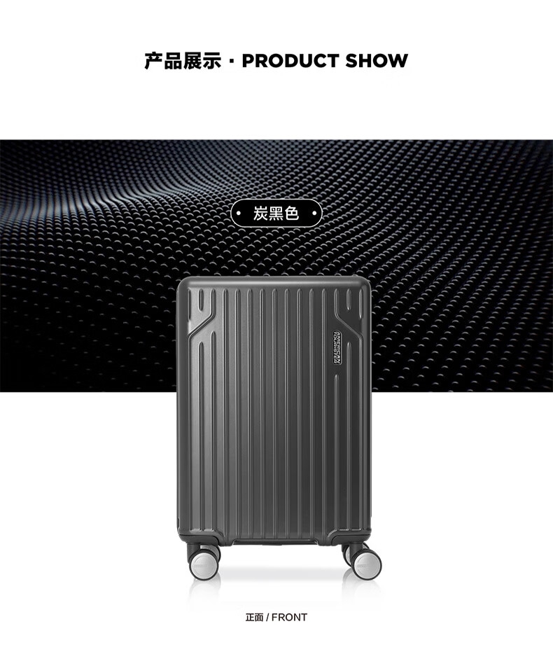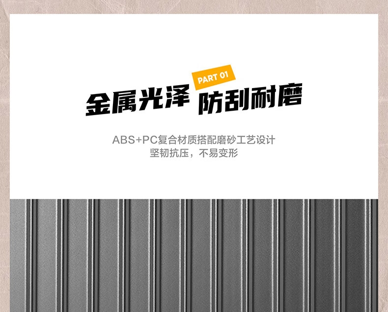 简约条纹设计,呈现金属光泽且防刮耐磨;复合材质搭配磨砂工艺,坚韧抗压,不易变形;小圆角造型,贴合箱内轮廓,容纳更多的物品