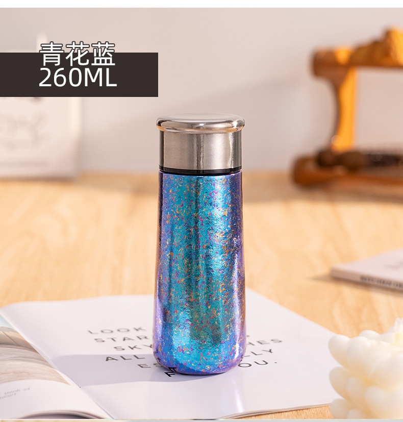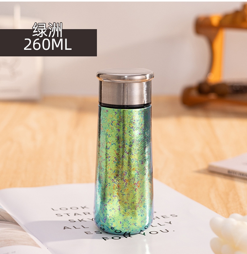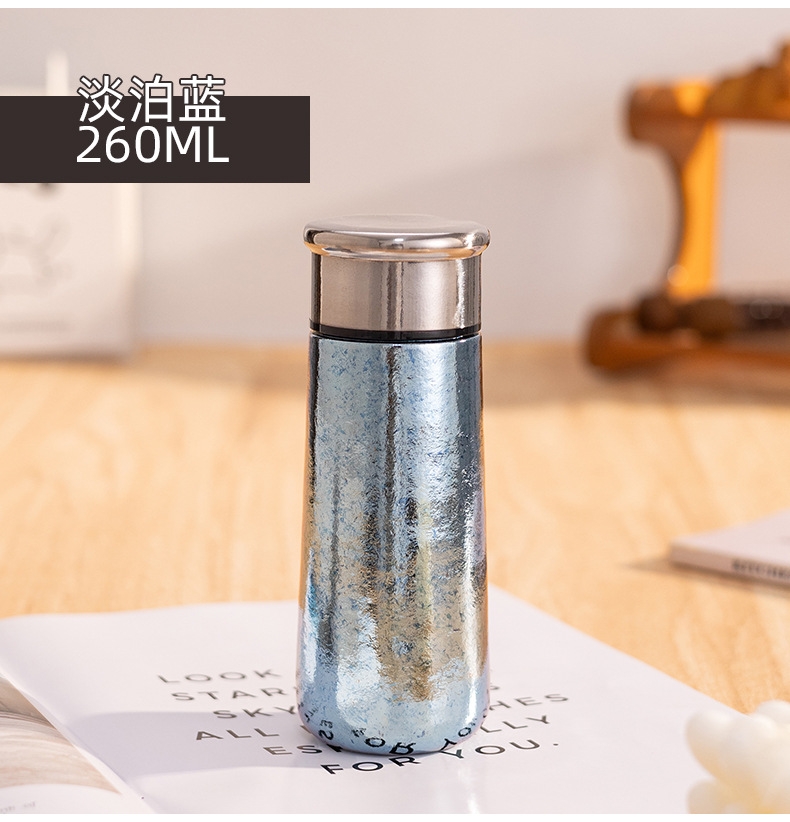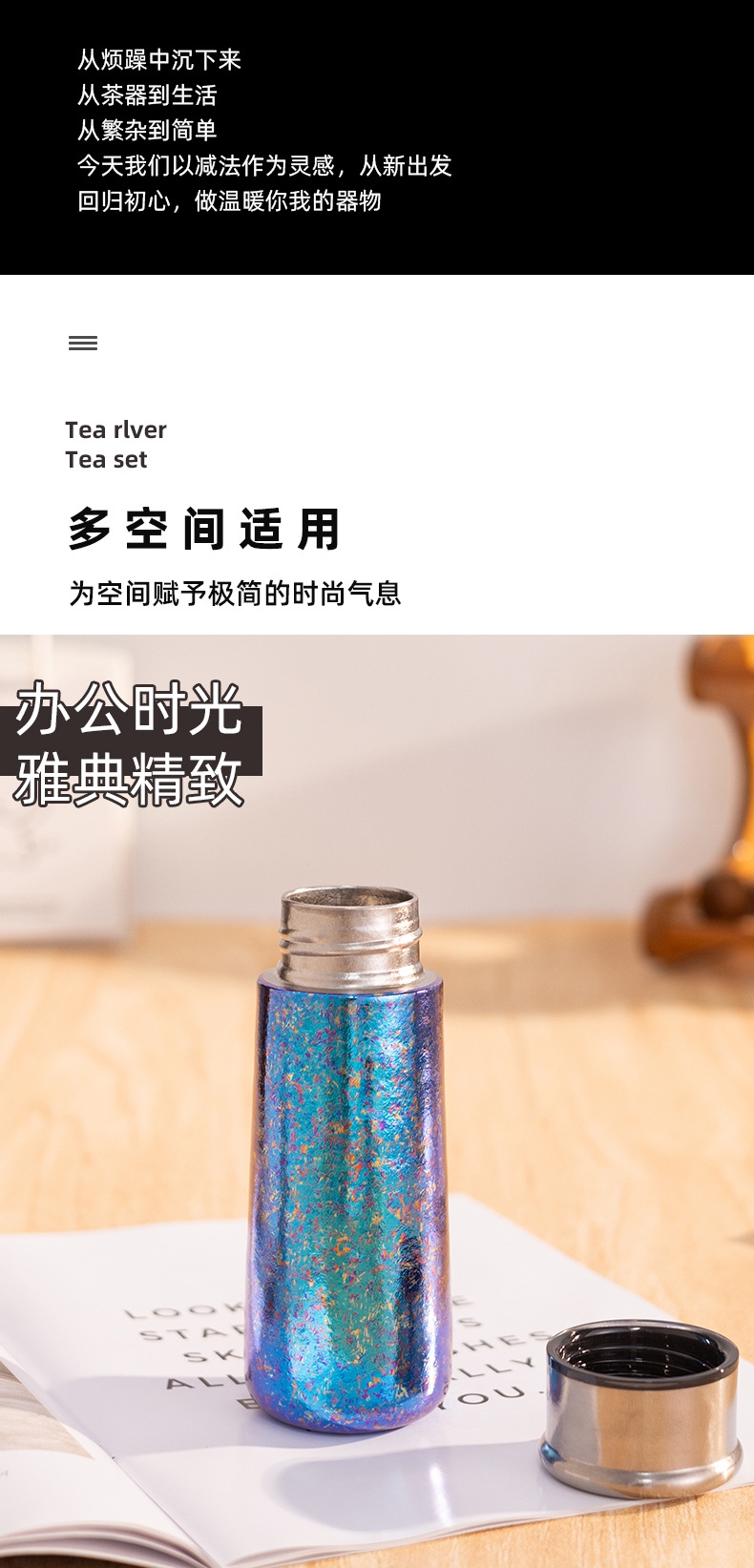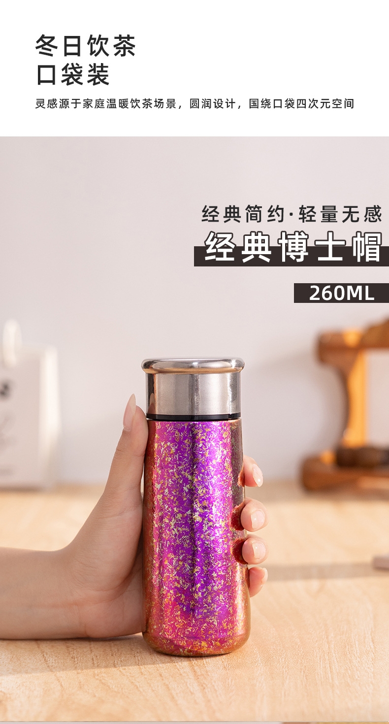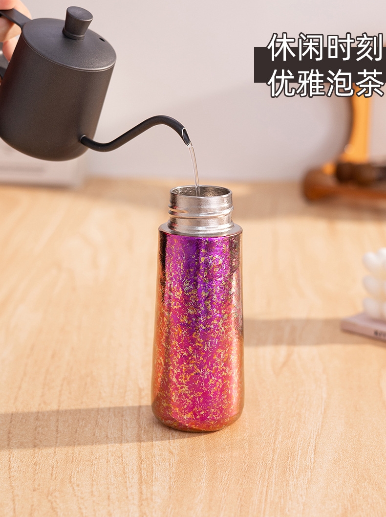 纯钛抗菌双层防烫 ●抑菌保鲜●无重金属● 耐酸碱性;冬日饮茶口袋装 灵感源于家庭温暖饮茶场景,圆润设计;我们以家的起点出发设计花卉系列在加上原钛的色系;经典螺纹 360°密封防漏 153克 真的很轻;螺纹杯口密封性好 倒置不漏水