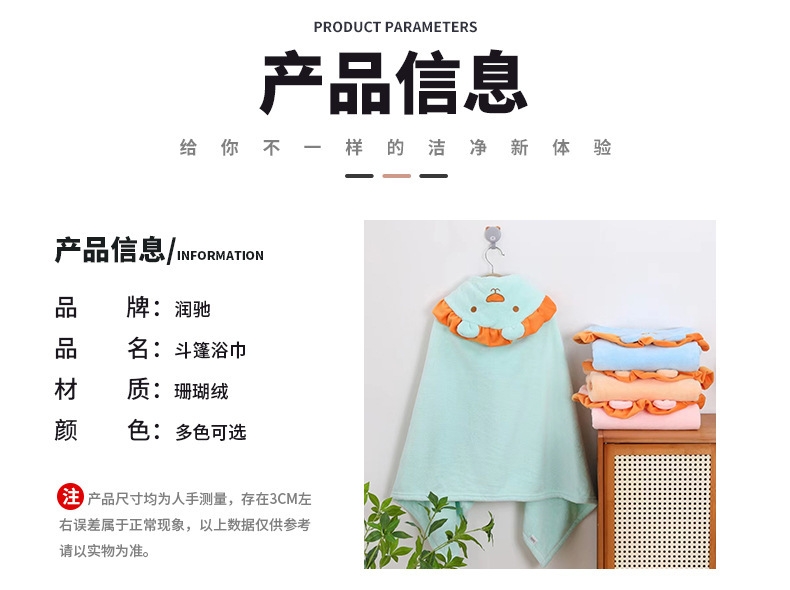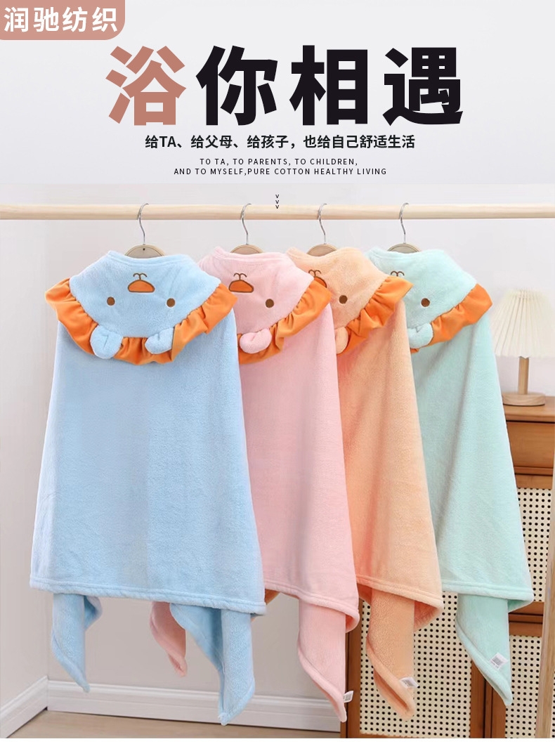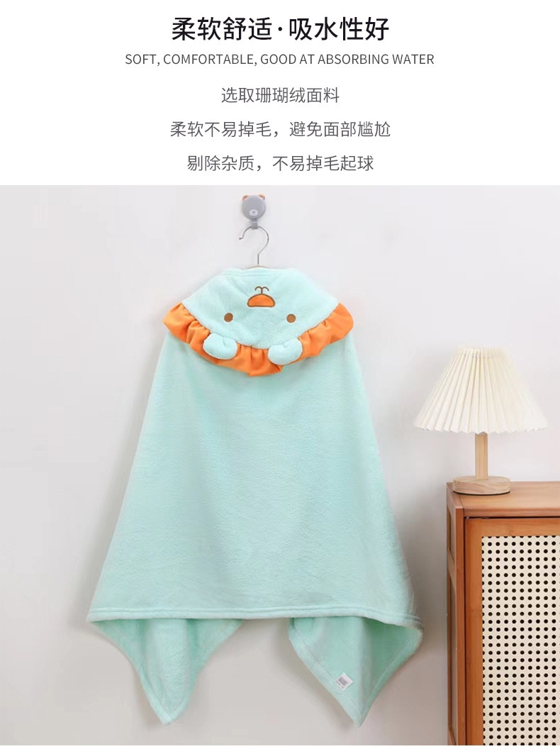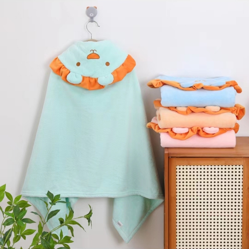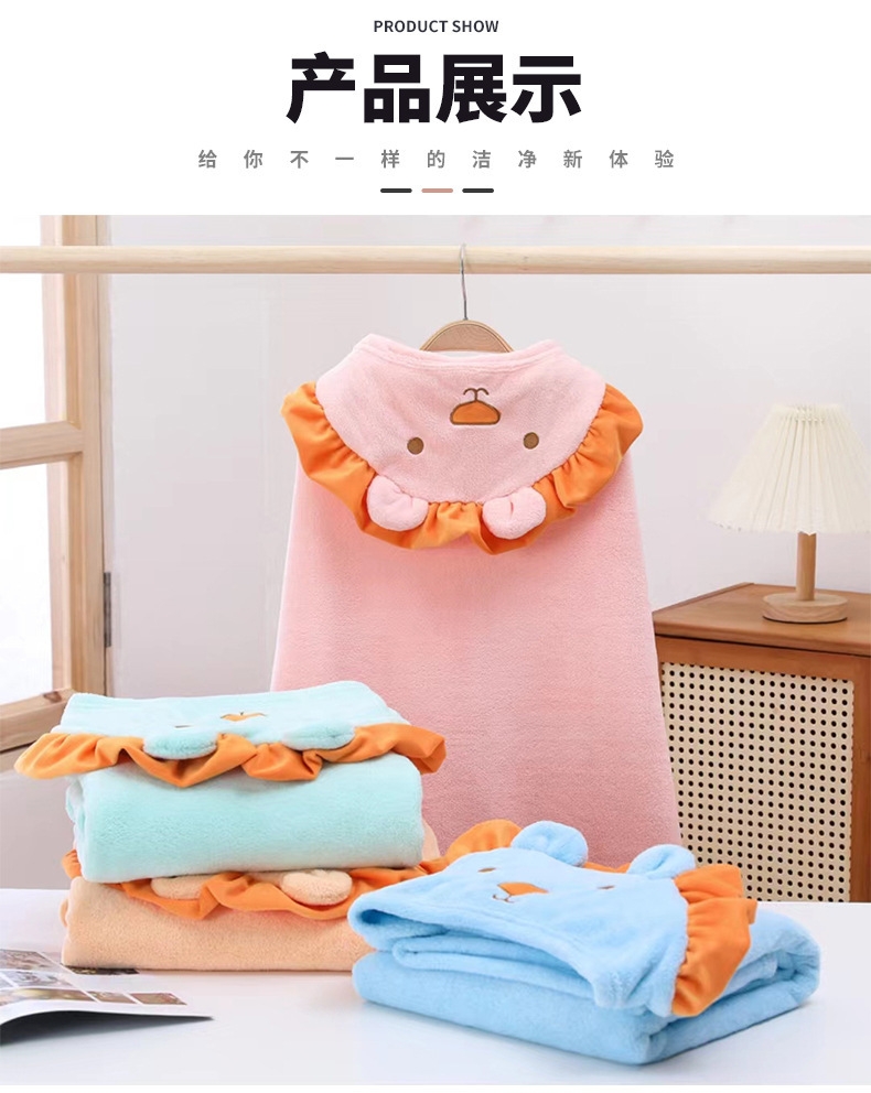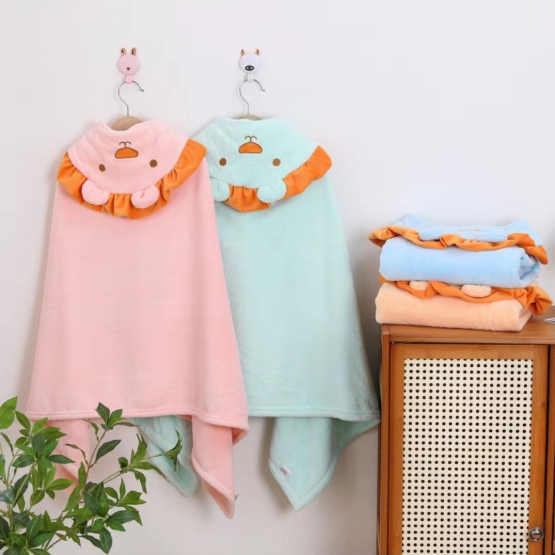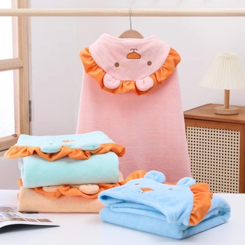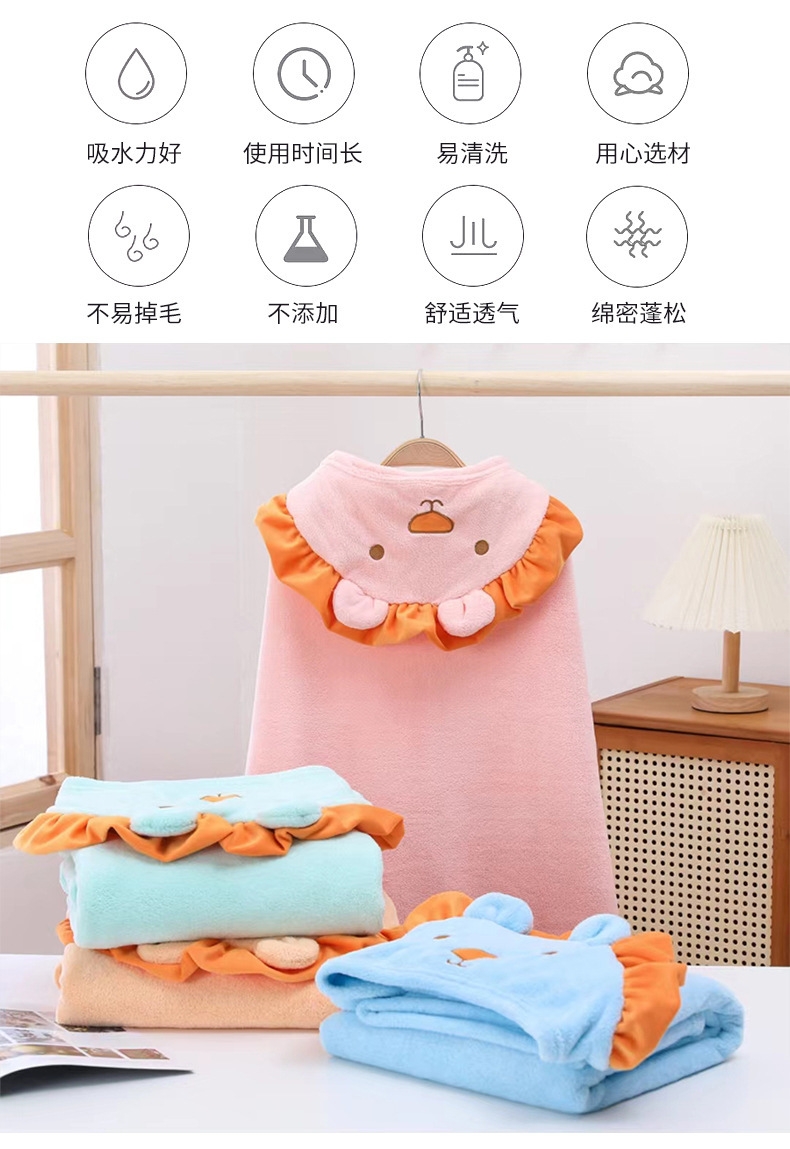 奥来纯 儿童卡通斗篷浴巾珊瑚绒可爱披风