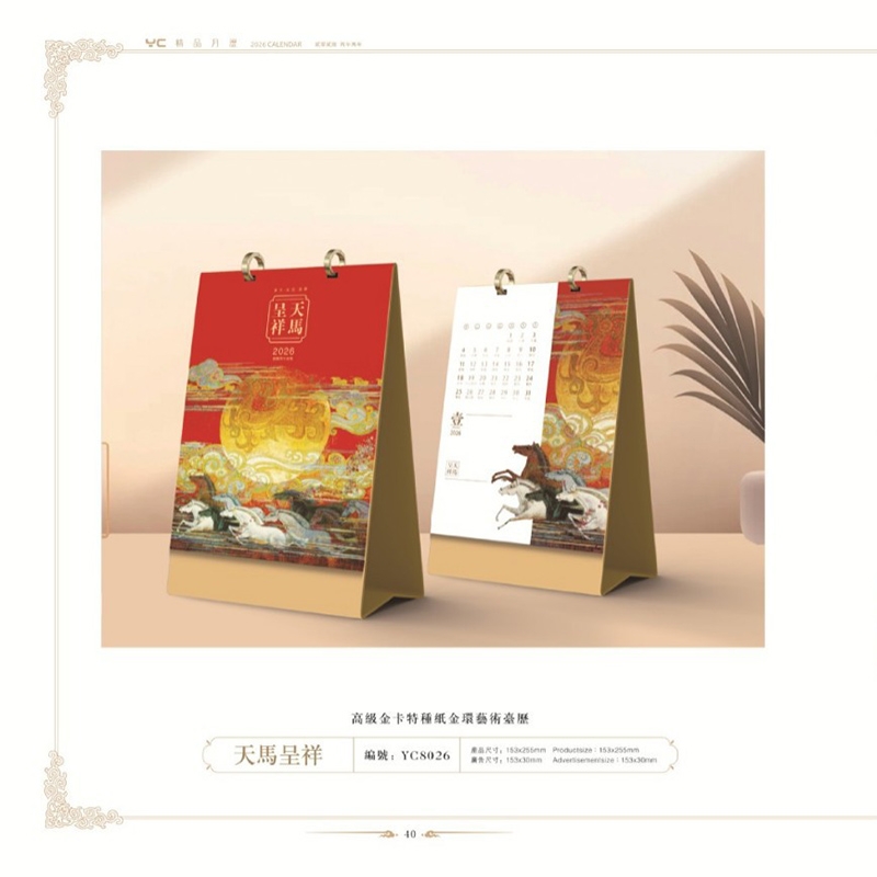 马年高级金卡特种纸金环艺术台历YG8026/YG8027/YG8028/YG8029