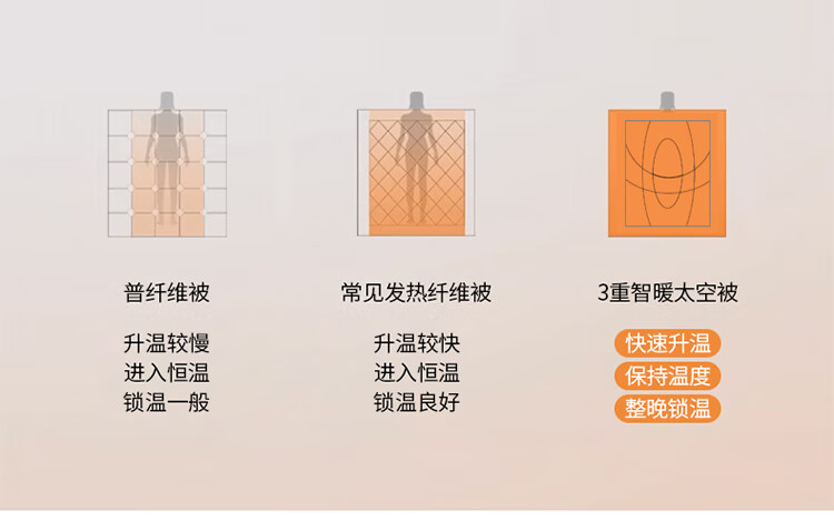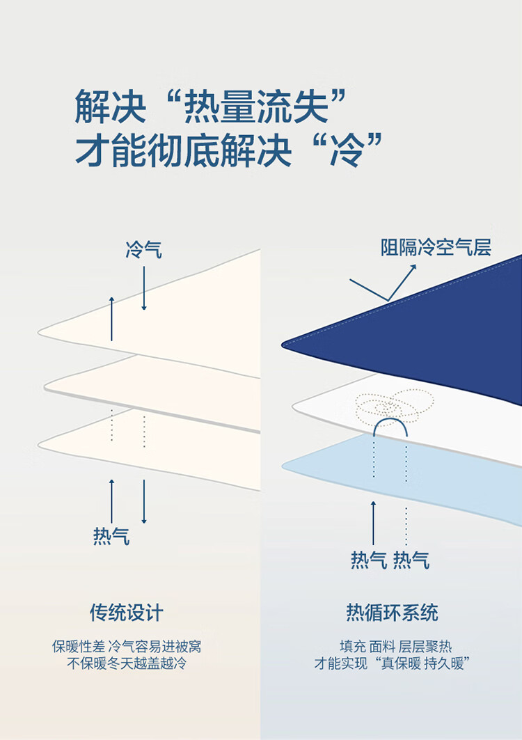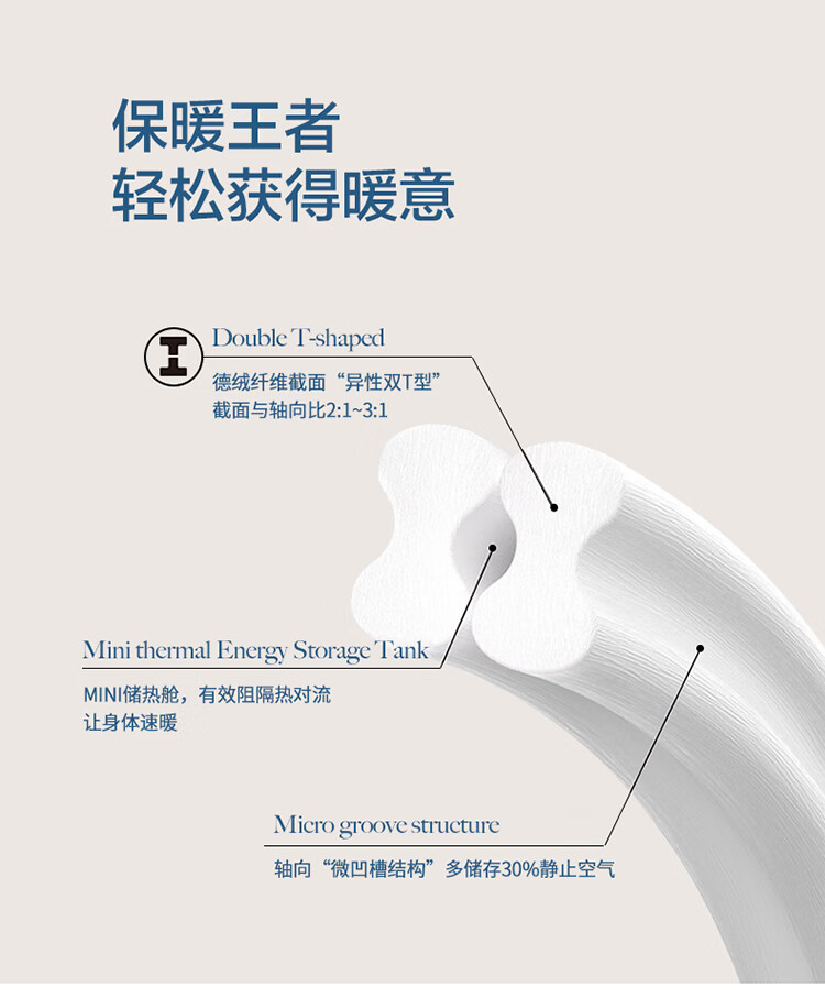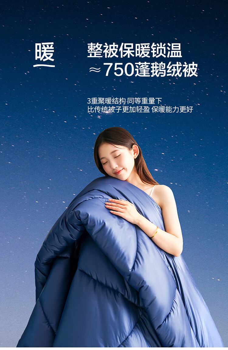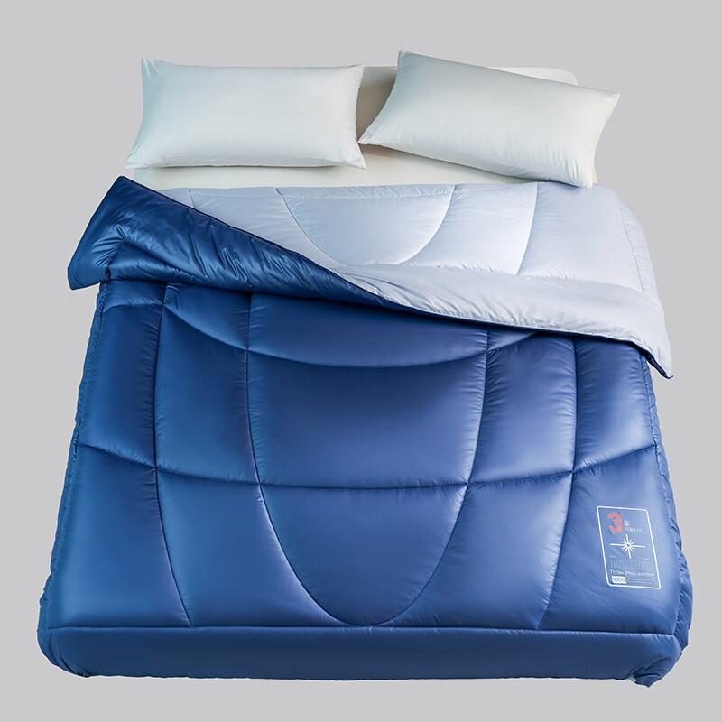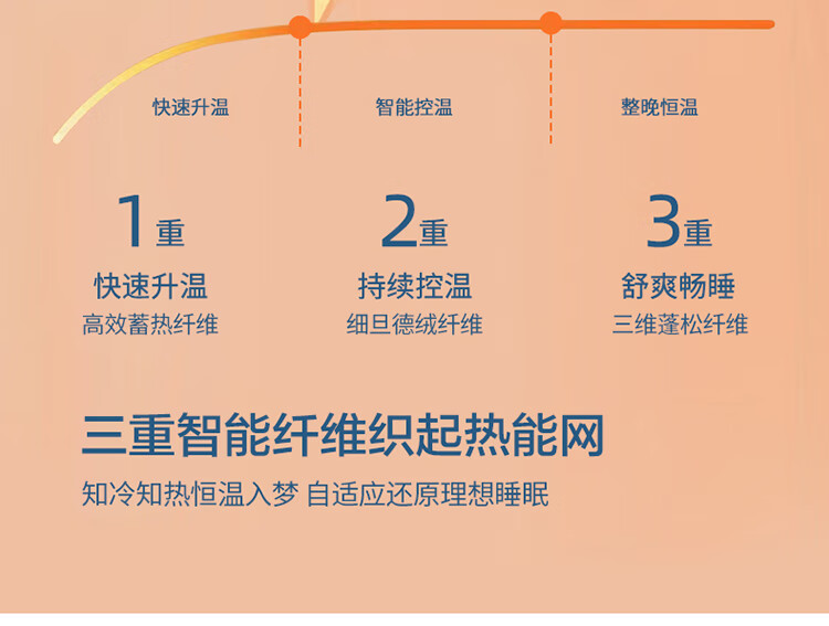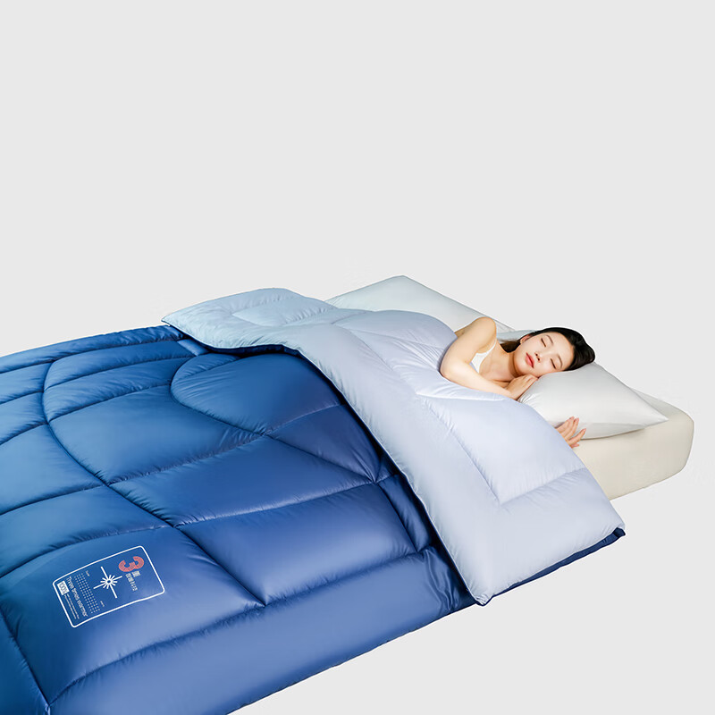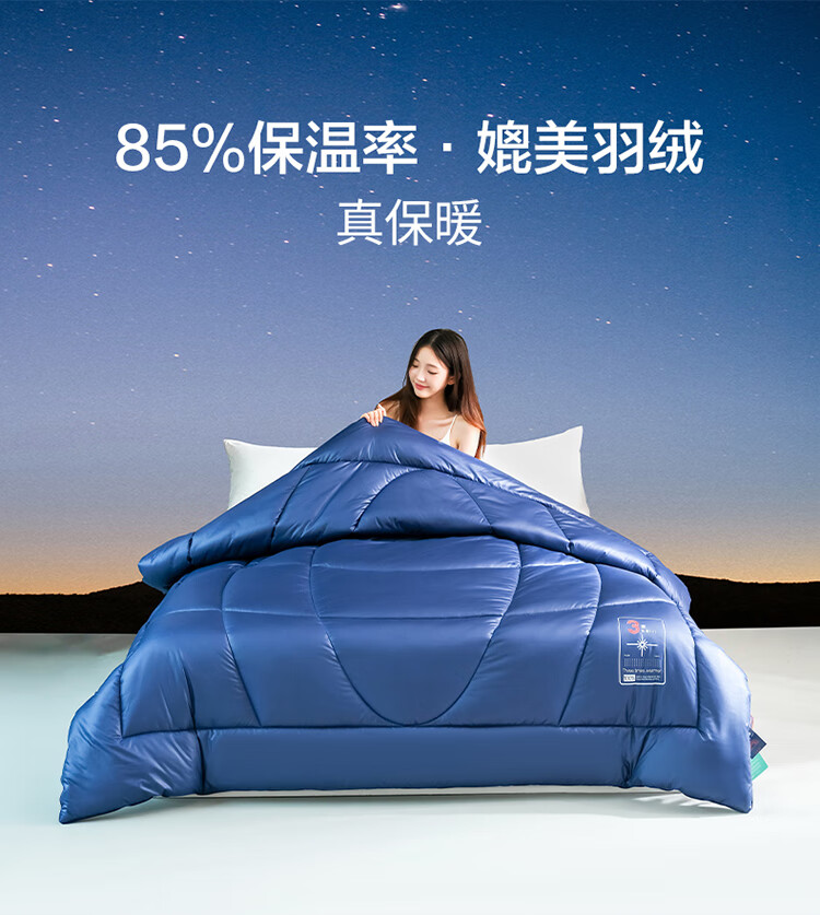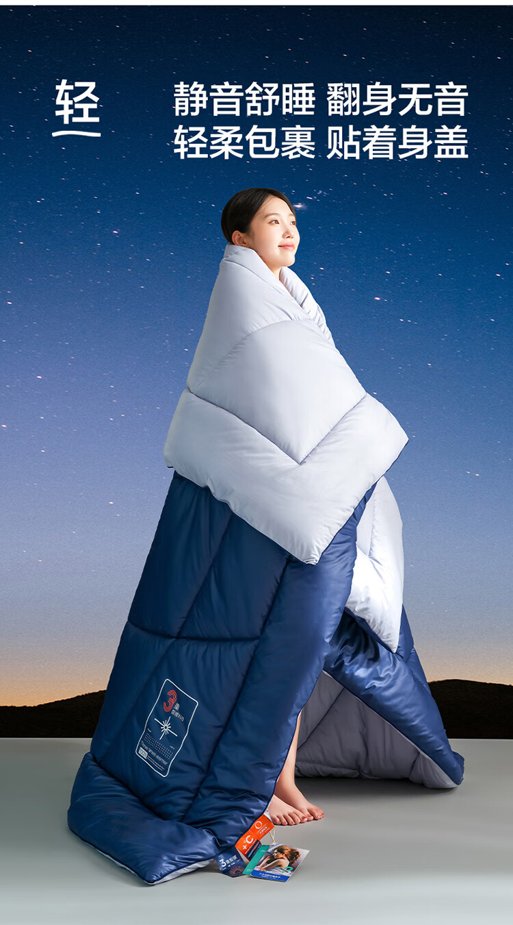 一重高效蓄热纤维可快速升温;二重细旦德绒纤维持续控温;三重三维蓬松纤维舒爽畅睡,多重智能纤维织起热能网;恒温入梦,还原理想睡眠;绗缝定位设计,固定填充,不易结团