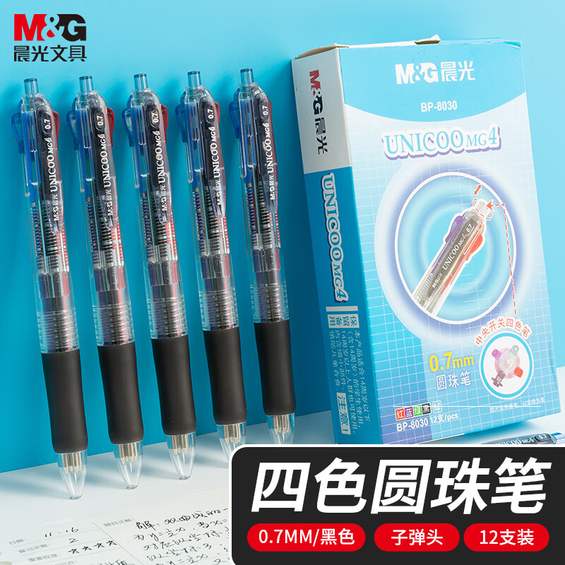 晨光 光圆珠笔中央开关四色0.7mmBP8030