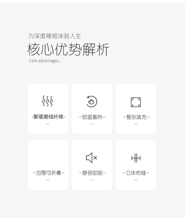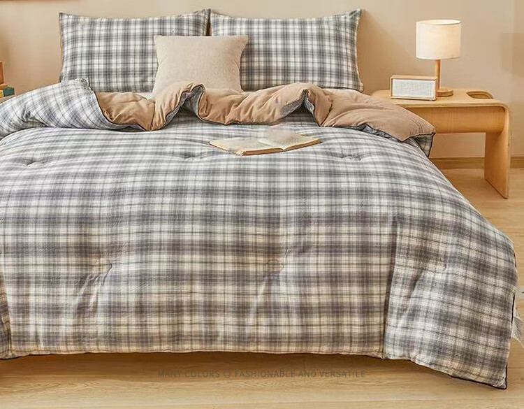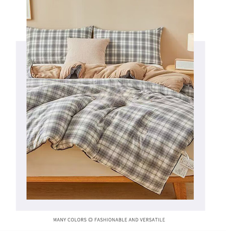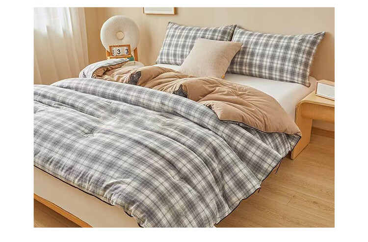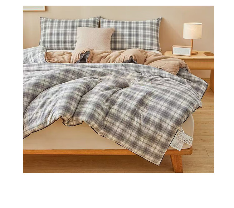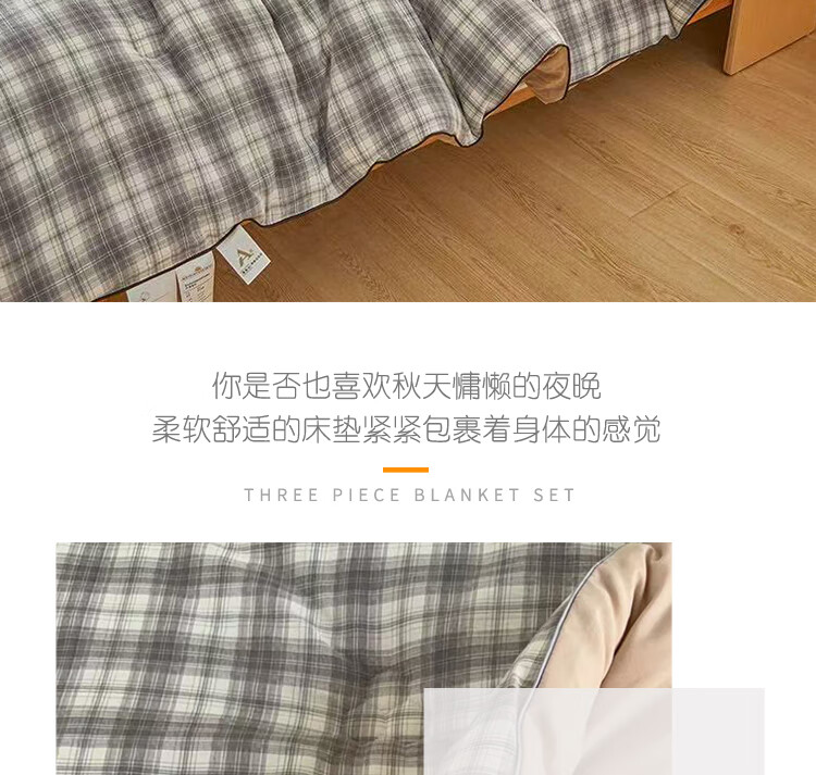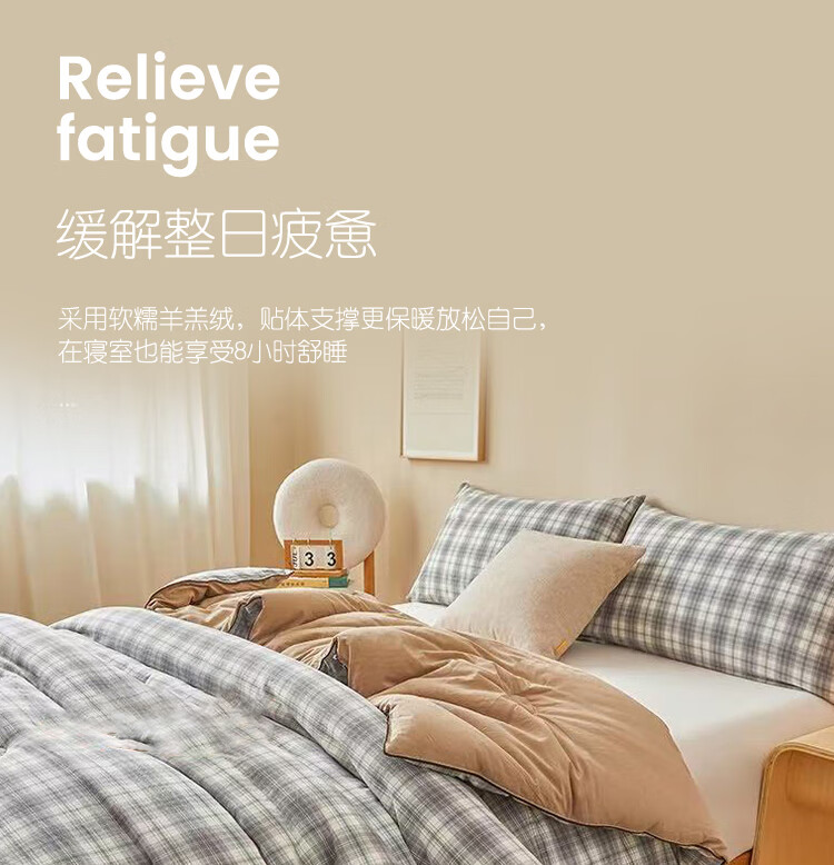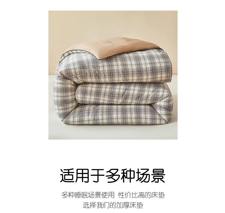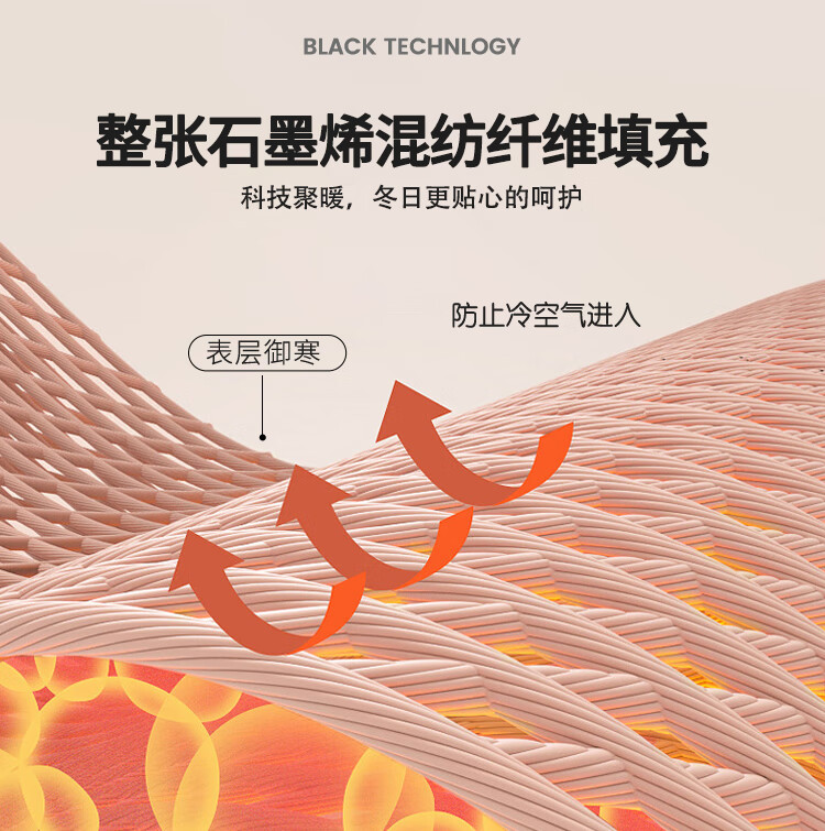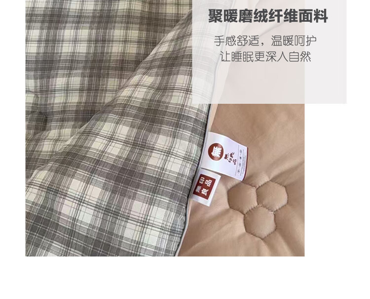 聚暖磨绒纤维面料,细腻、聚暖,亲肤,呵护健康睡眠。;整张石墨烯混纺纤维填充,科技聚暖,冬日更贴心的呵护;無印格子风设计,经典传承,让体验更惬意。