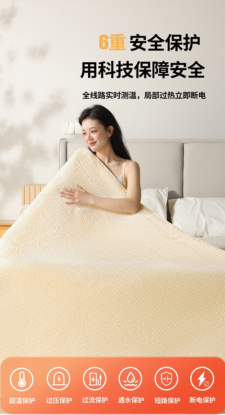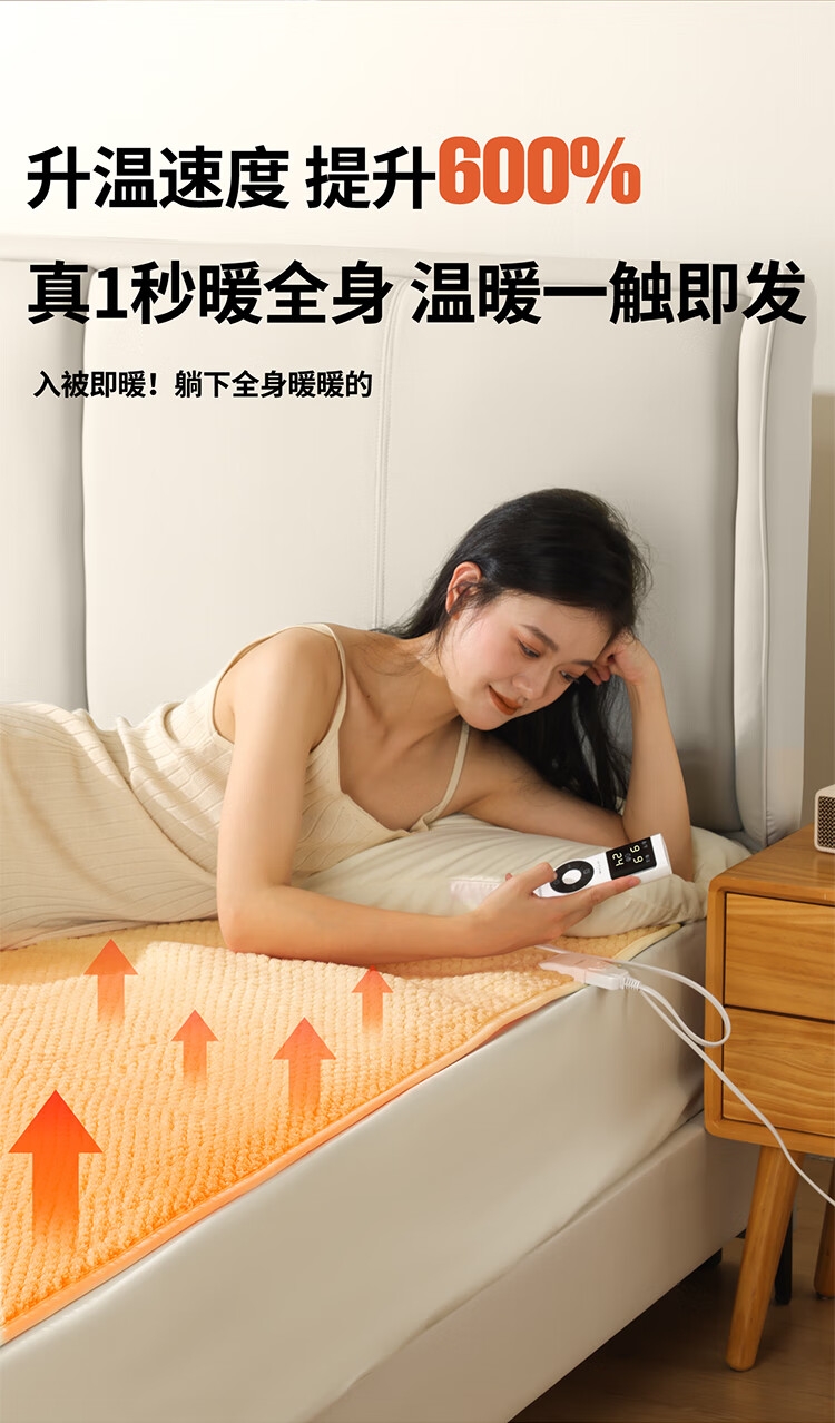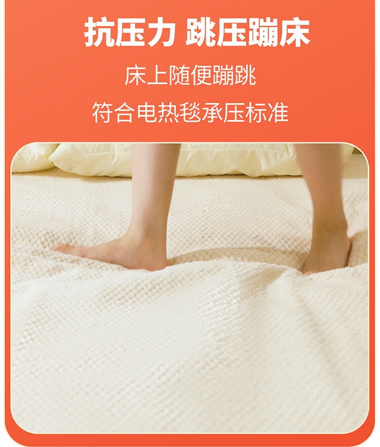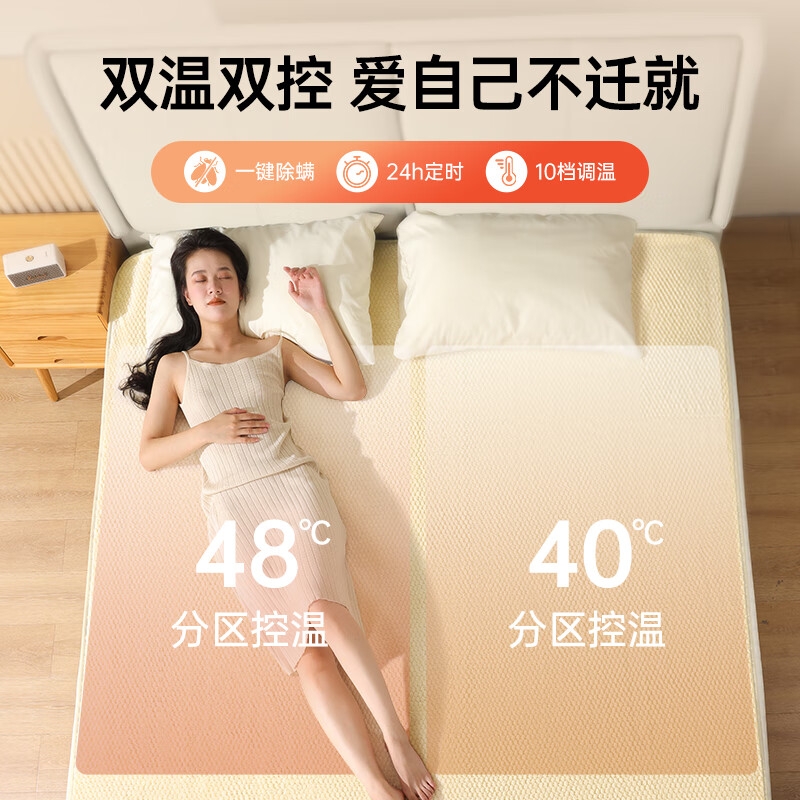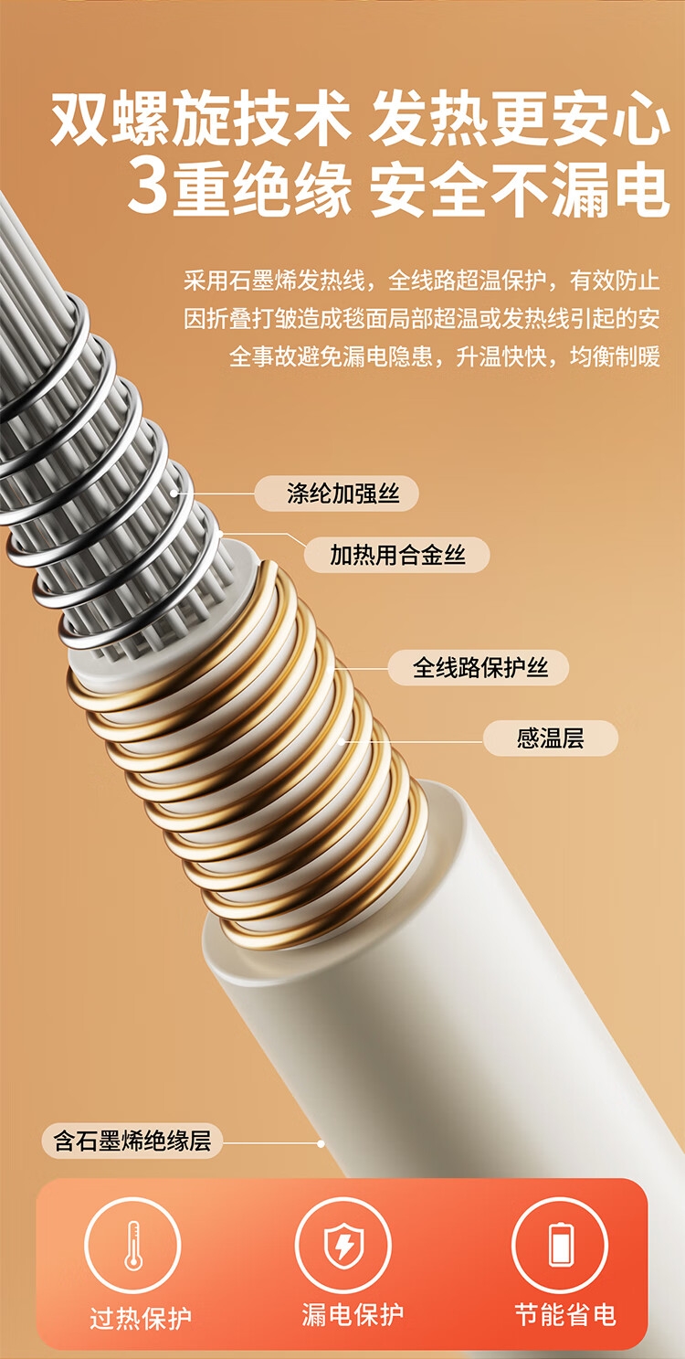 石墨烯碳纤维发热体电热毯;AI智能双区独立温控;高温抑菌除螨 双螺旋发热丝