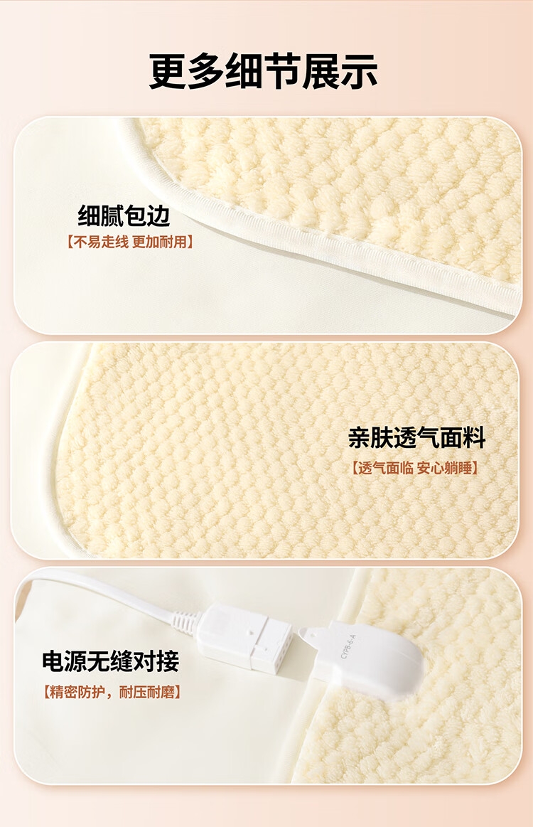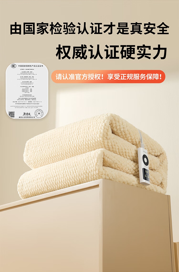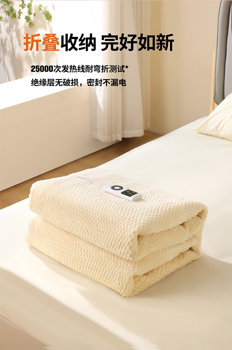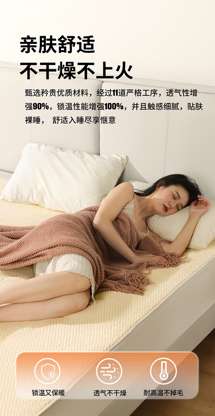 石墨烯碳纤维发热体电热毯;AI智能双区独立温控;高温抑菌除螨 双螺旋发热丝