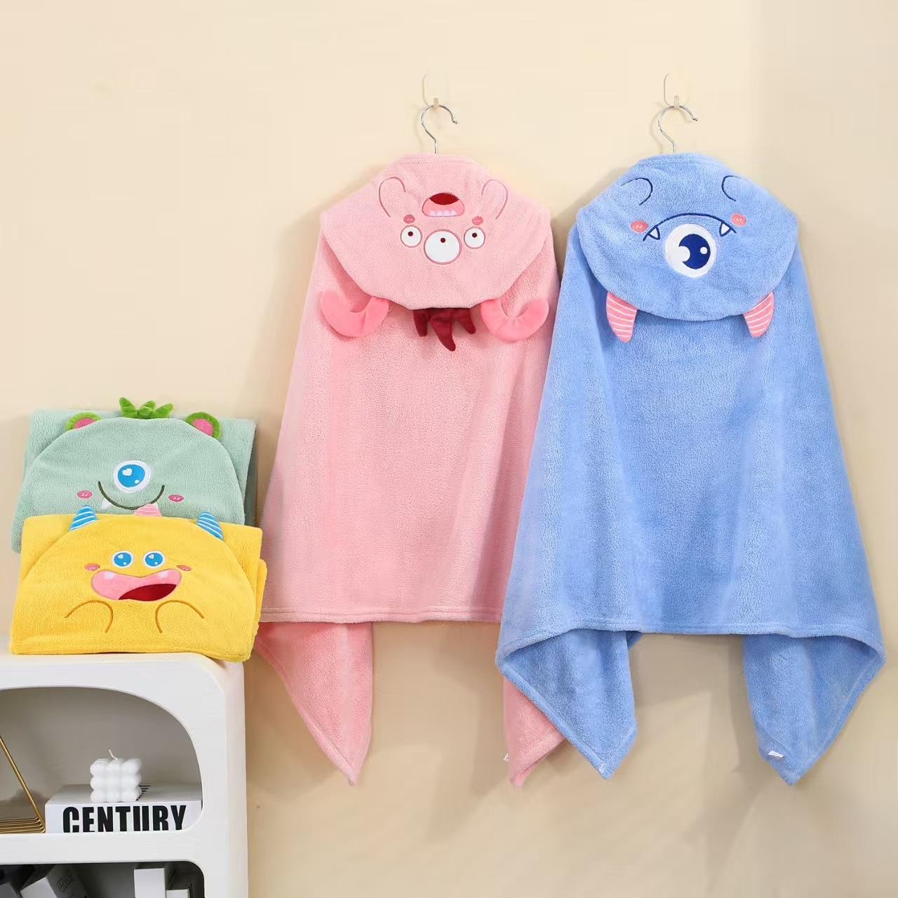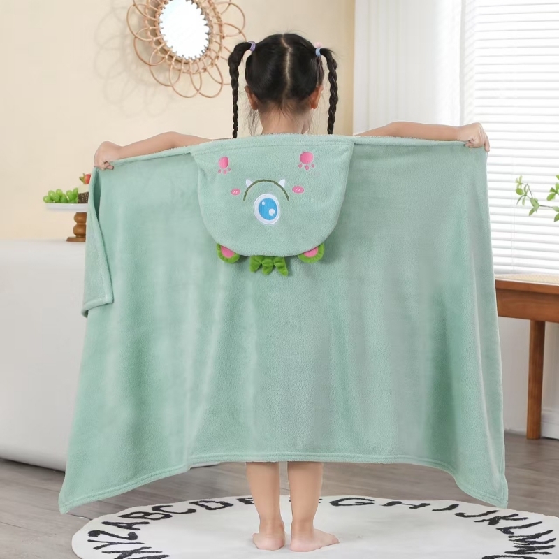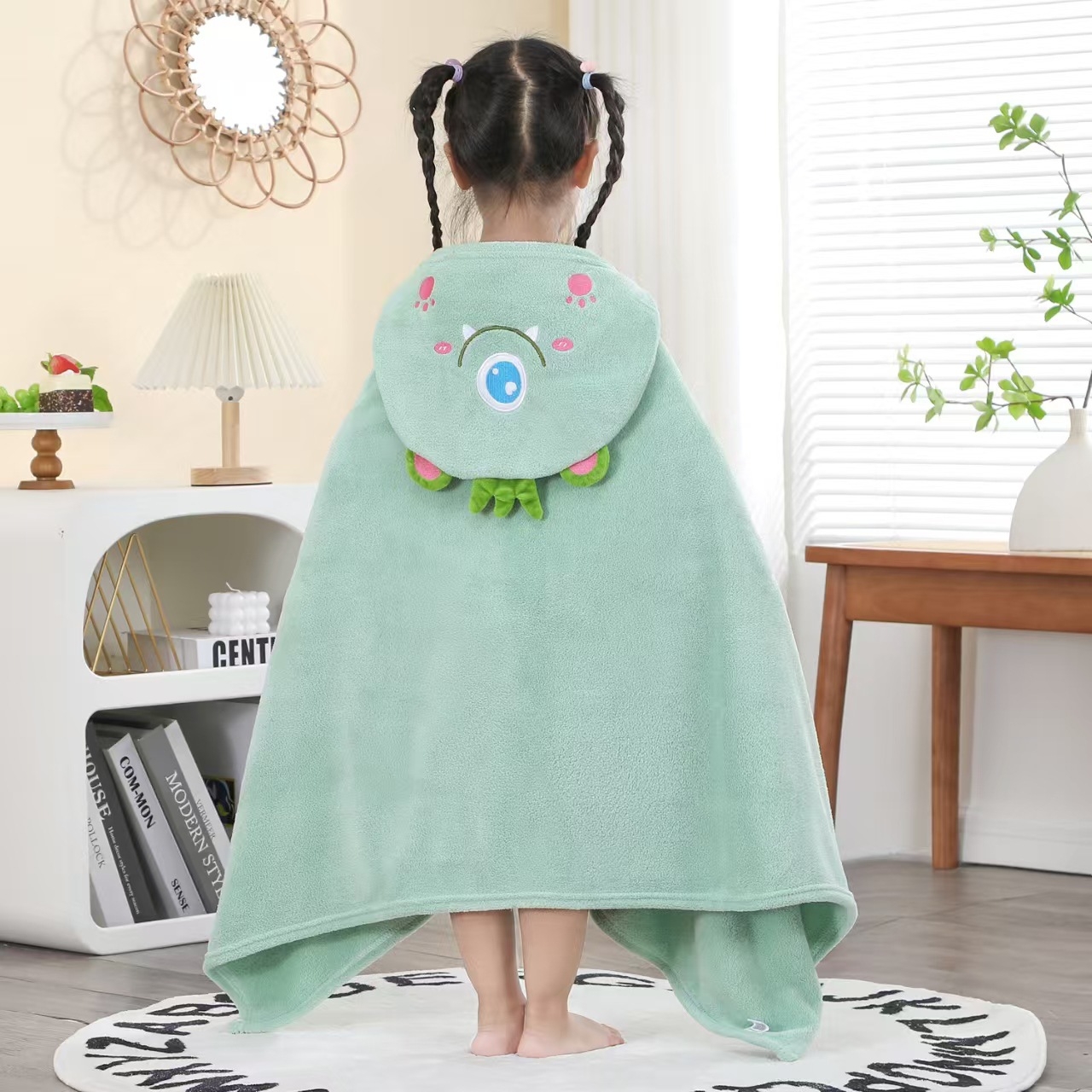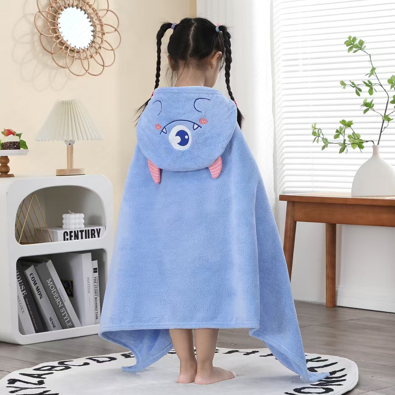 奥来纯 儿童浴巾珊瑚绒婴儿速干连帽斗篷