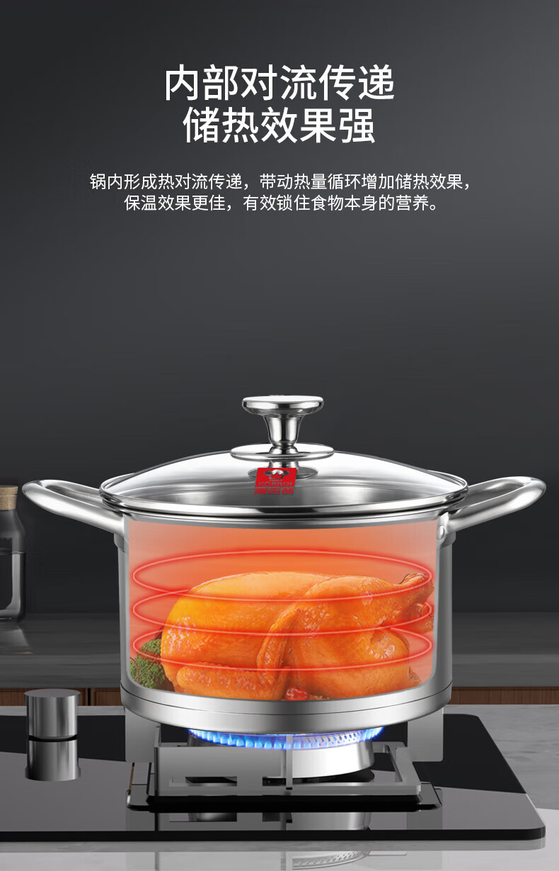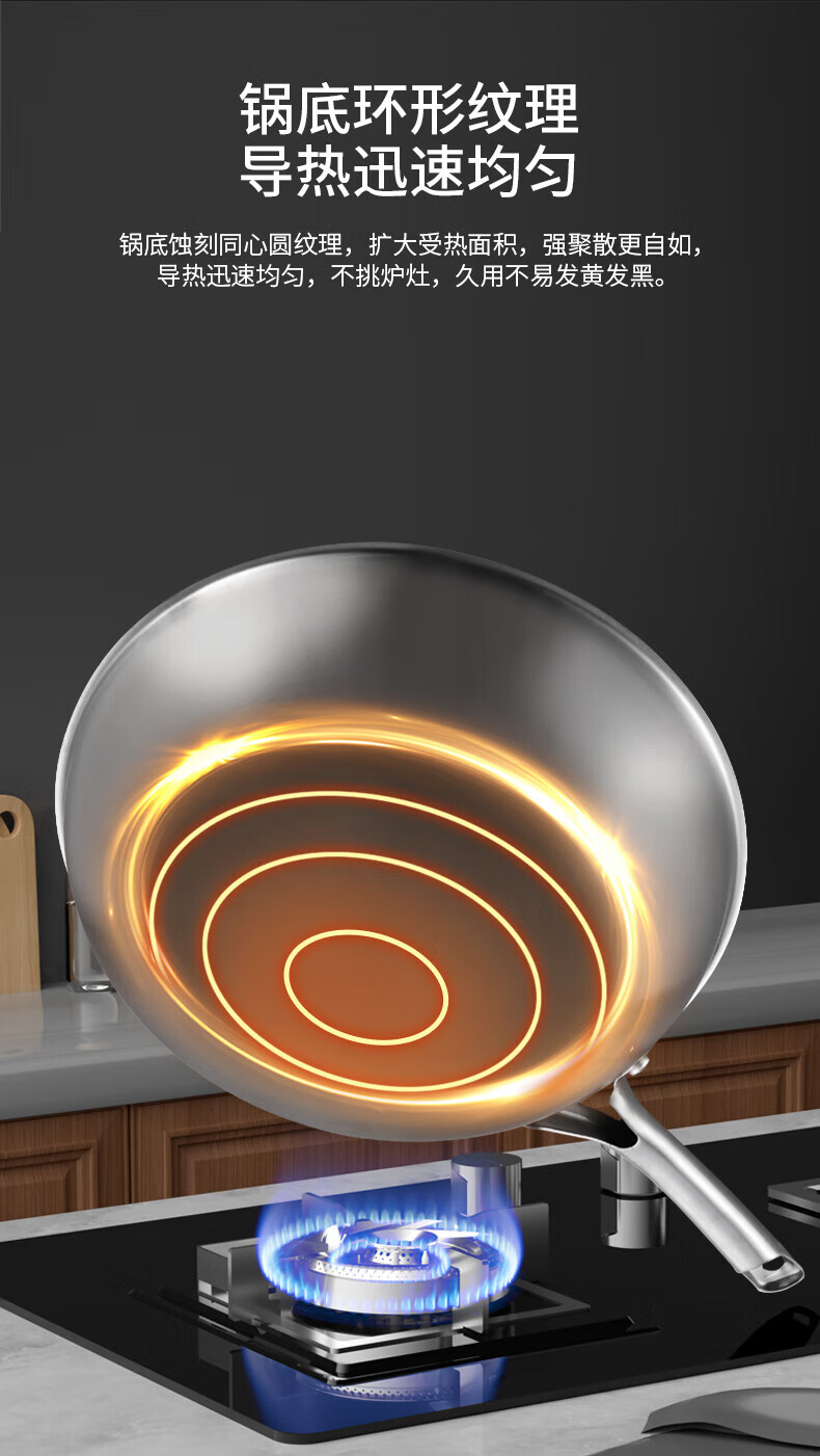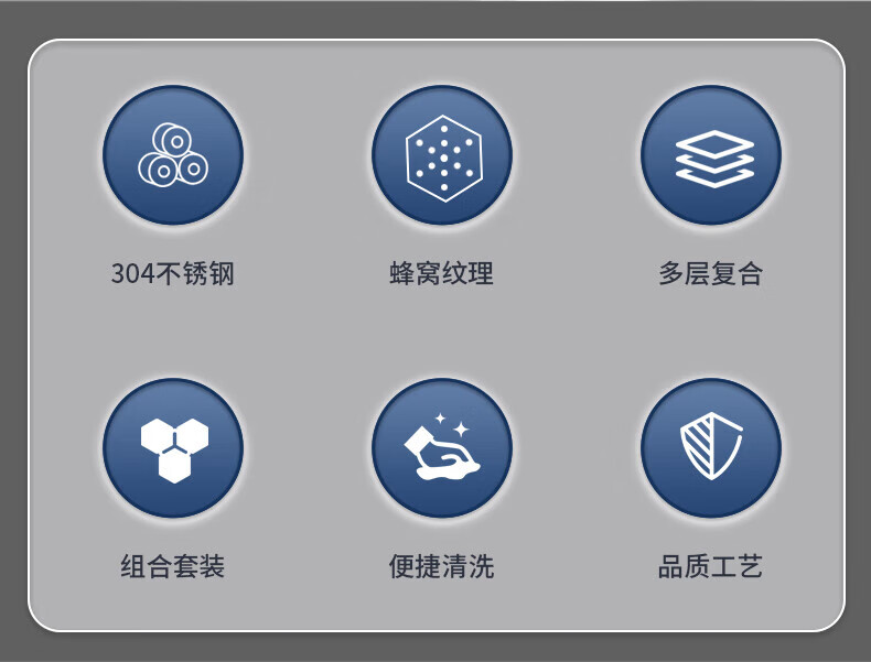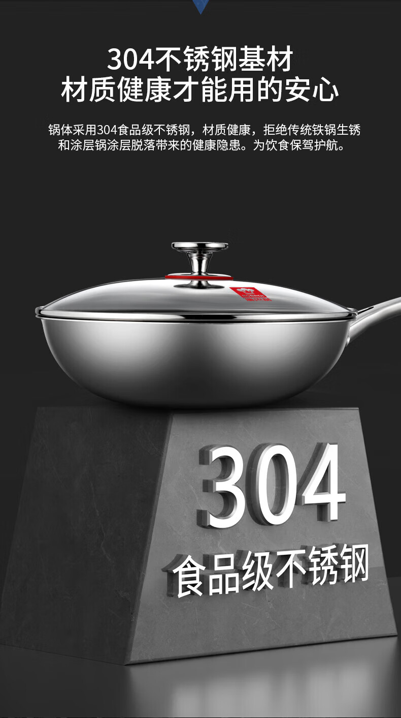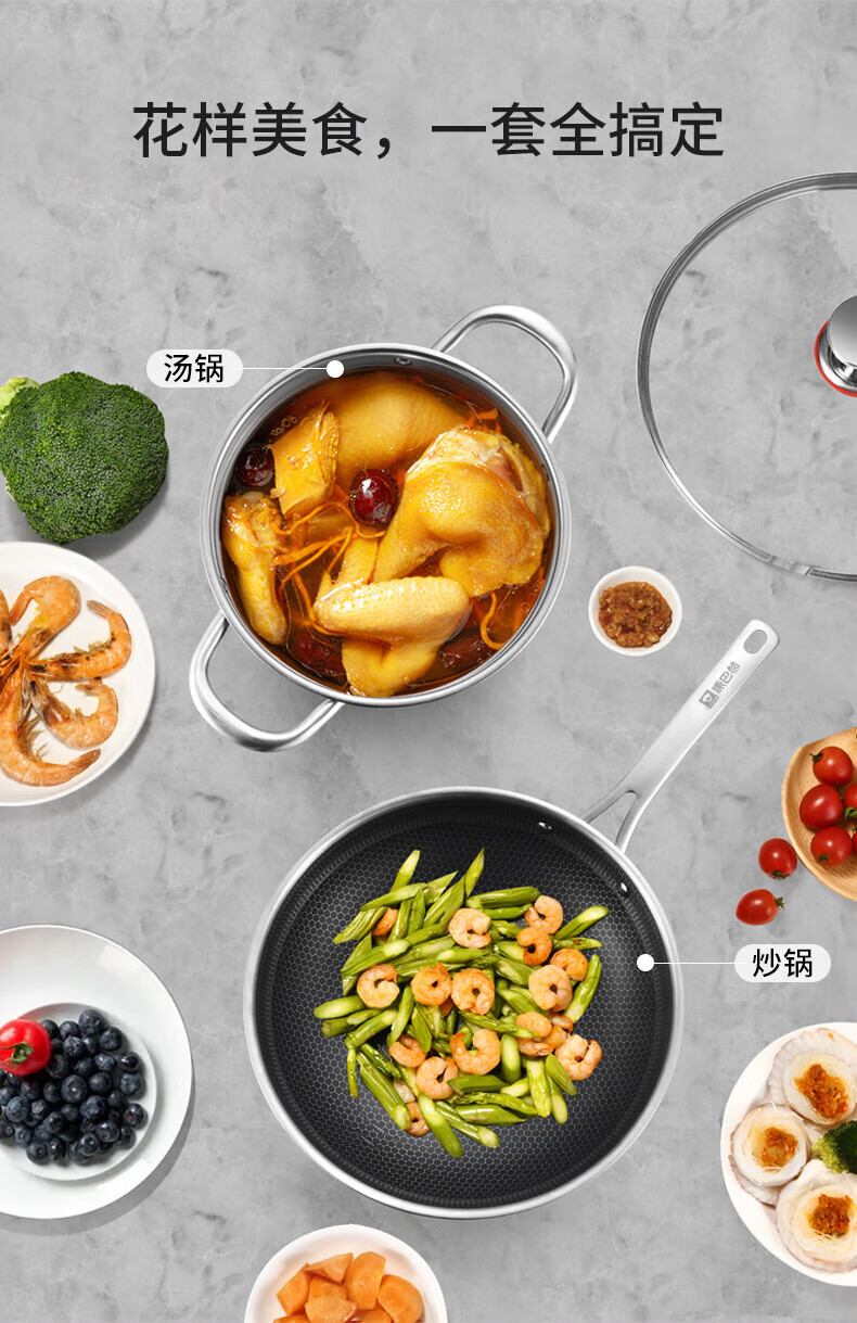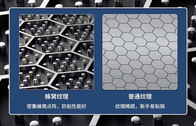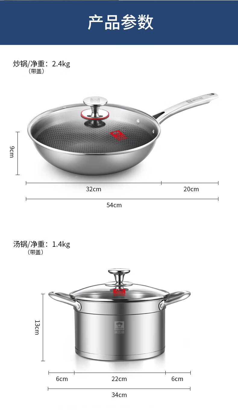 锅体采用304食品级不锈钢,材质健康;超密点阵蜂窝纹,持久不粘 轻松下厨;锅身采用多层复合工艺,一体冲压成型