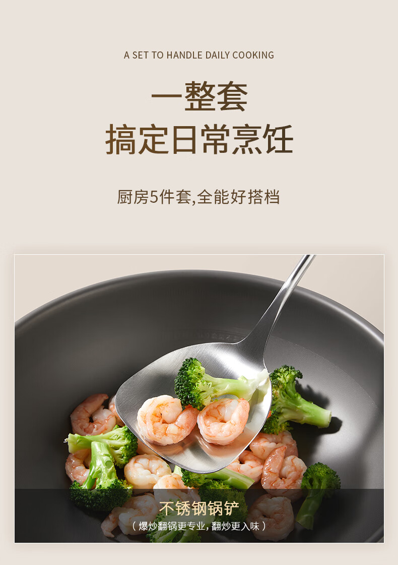 配置:锅铲 煎铲 汤勺 漏勺 线漏