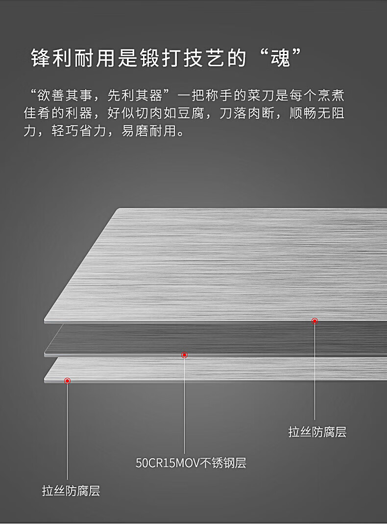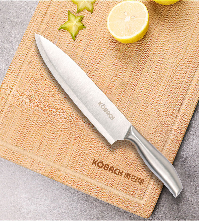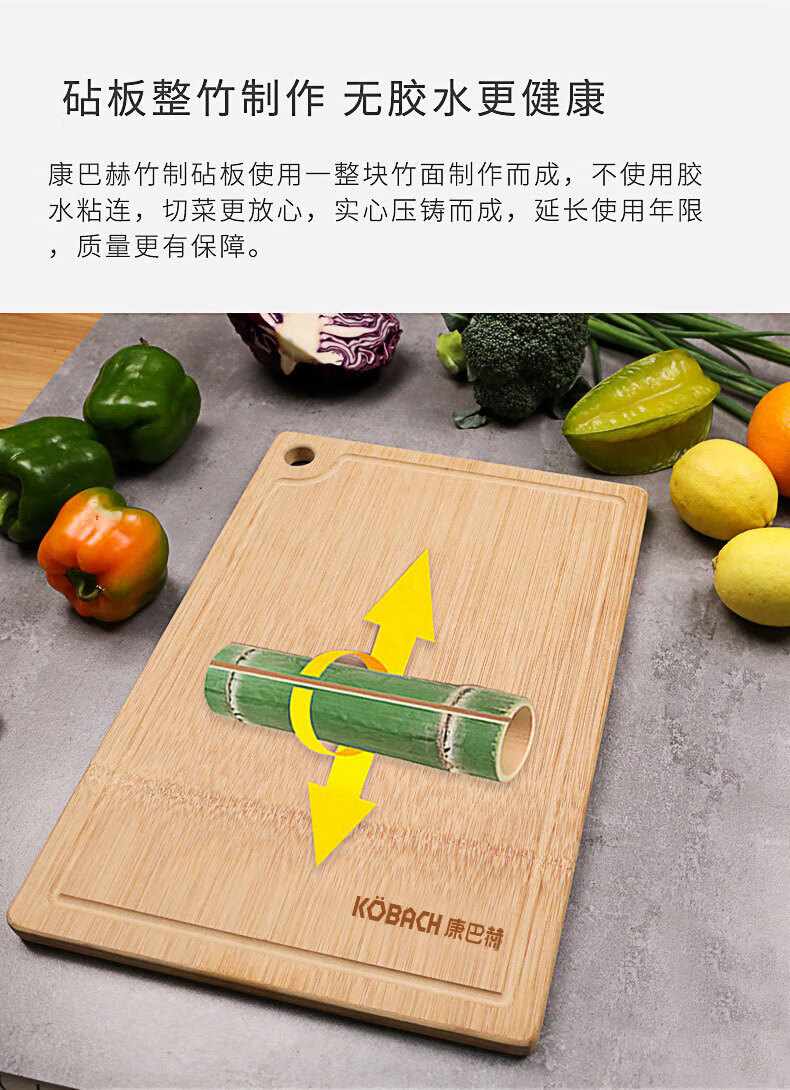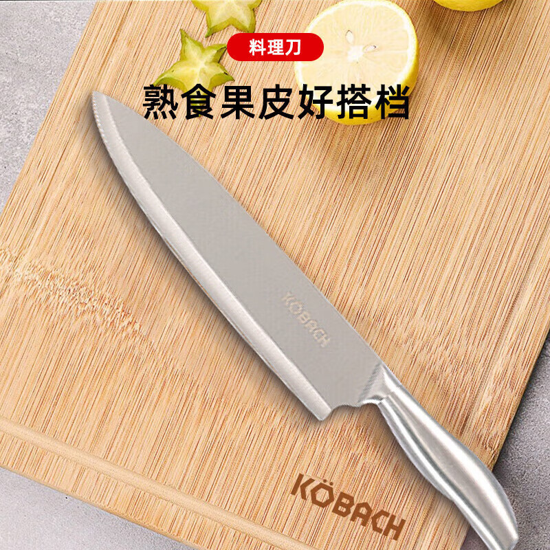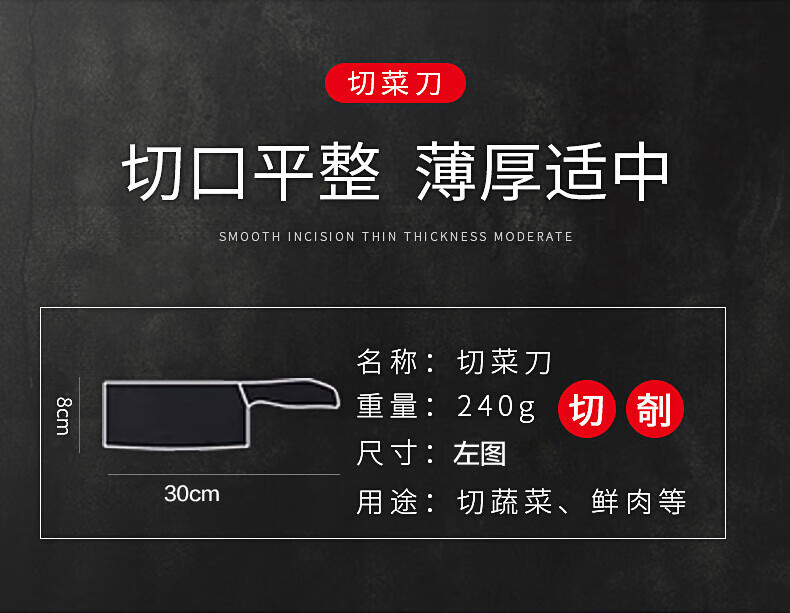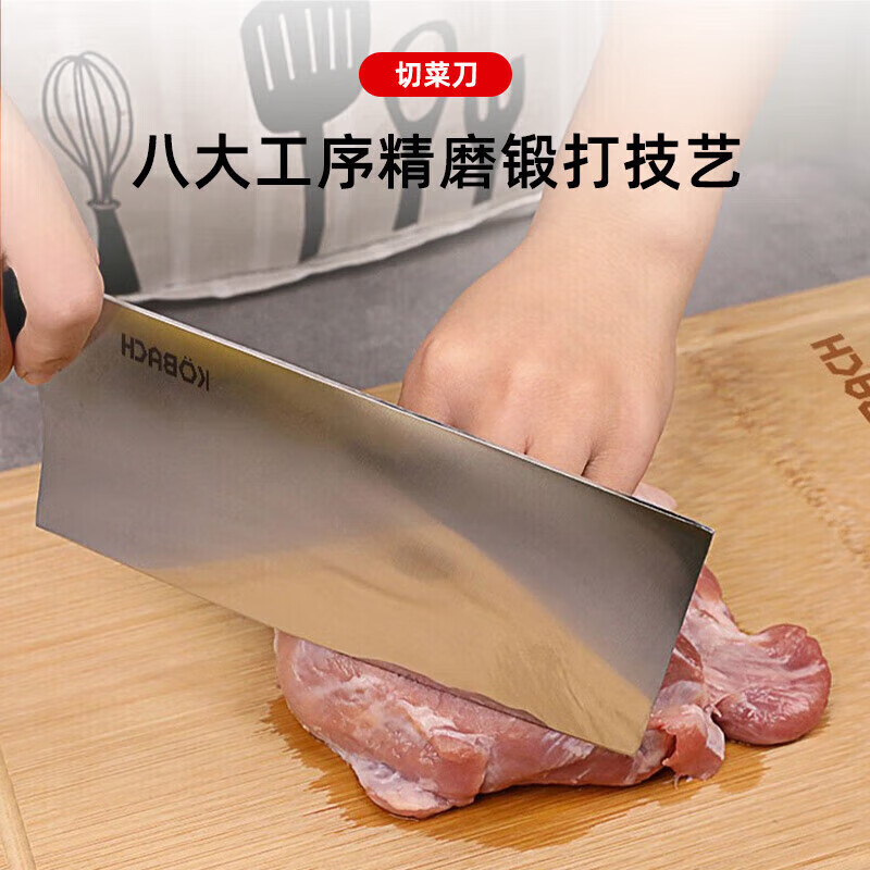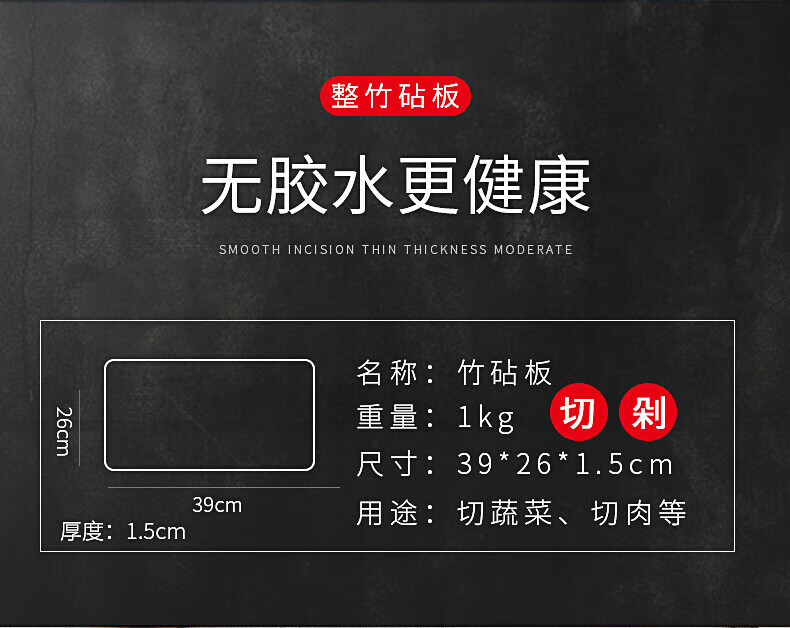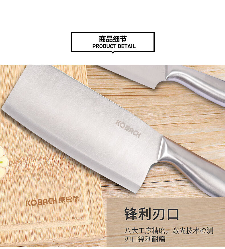 天然竹砧板:由整片竹子压铸而成;中式厨房必备的切片刀:精炼好钢;坚固锋利