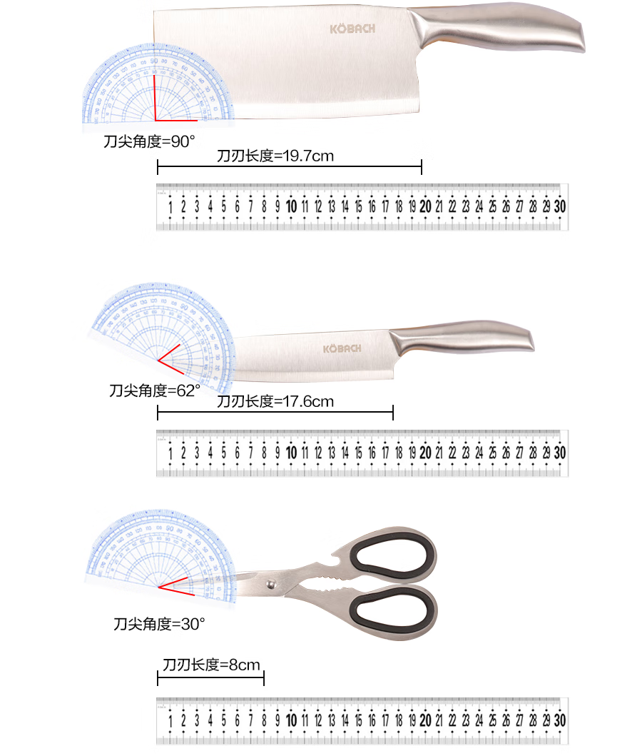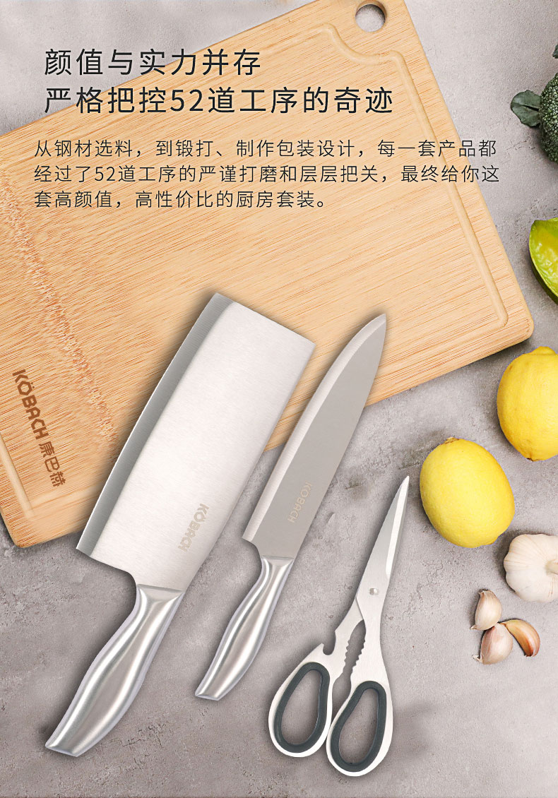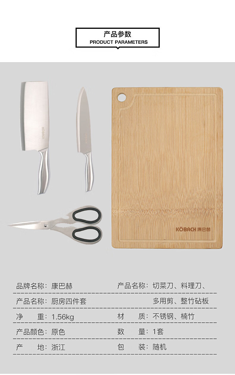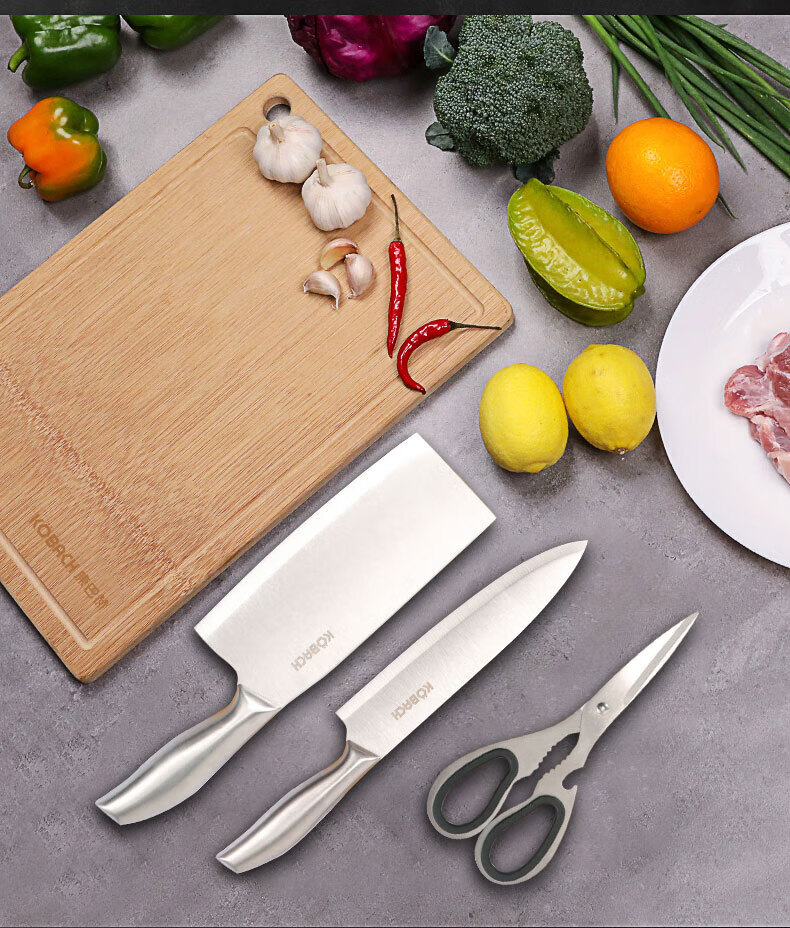 配置:菜板*1、剪刀*1、厨师刀*1、菜刀*1