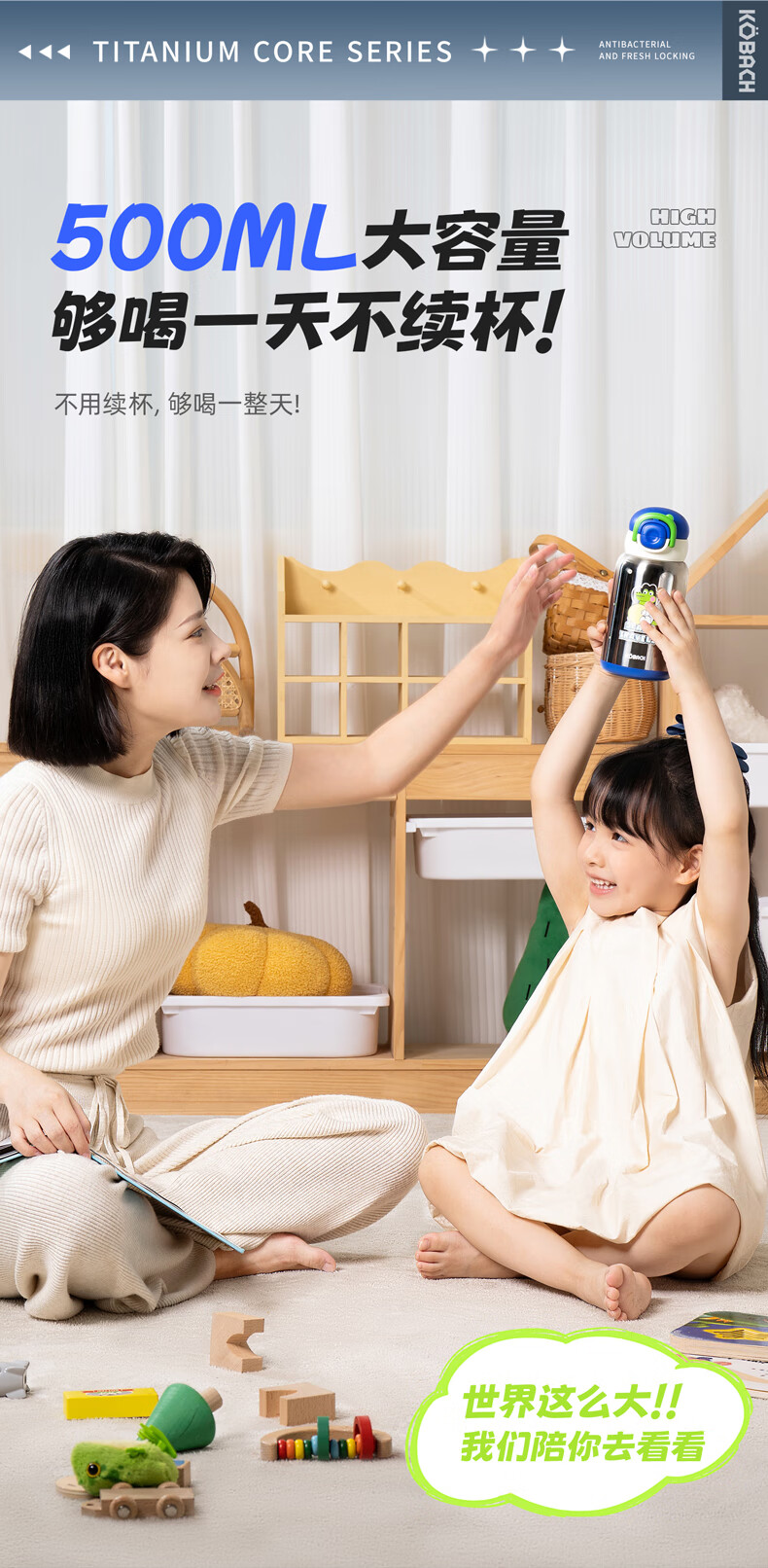 康巴赫 双饮儿童钛保温壶500mLKH-B50T01/KH-B50T02