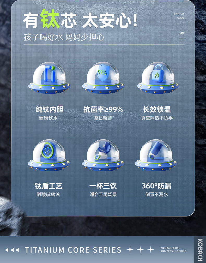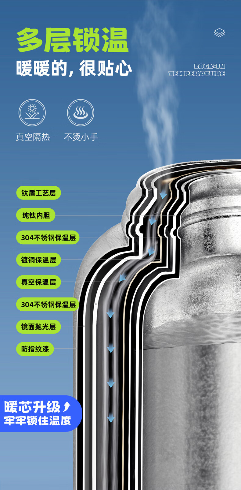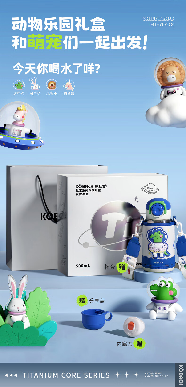100%纯钛材内胆,安心小魔法健康守护神;萌趣动物造型,快乐喝水不缺席;多层锁温暖暖的,很贴心