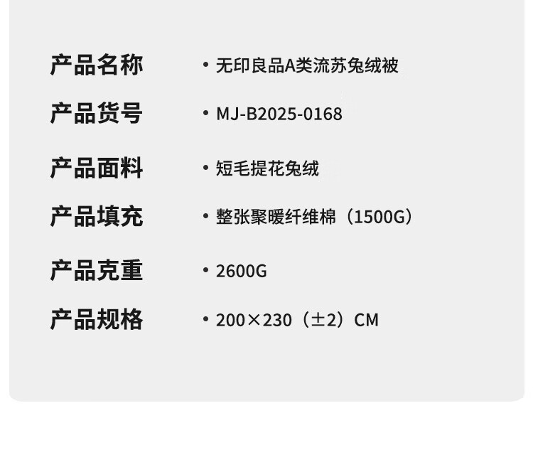 無印良品 无印A类流苏兔绒被MJ-B2025-0168