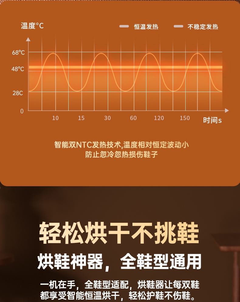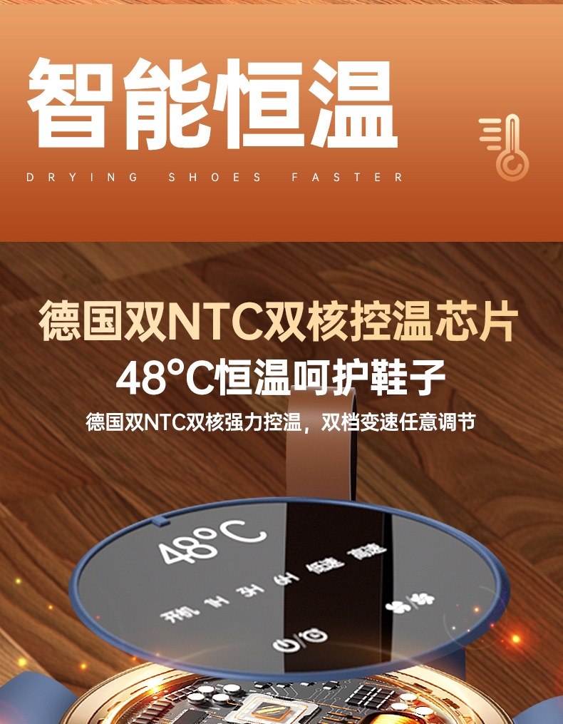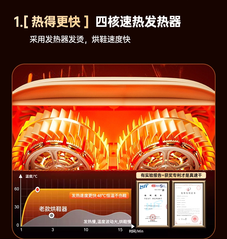 四核引擎发热体;多档定时设计;智能恒温不伤鞋