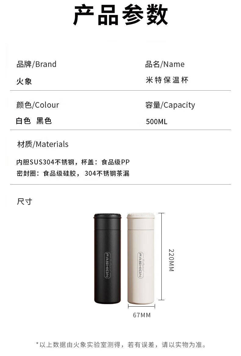 材质:内胆SUS304不锈钢,杯盖;食品级PP 密封圈:食品级硅胶, 304不锈钢茶源