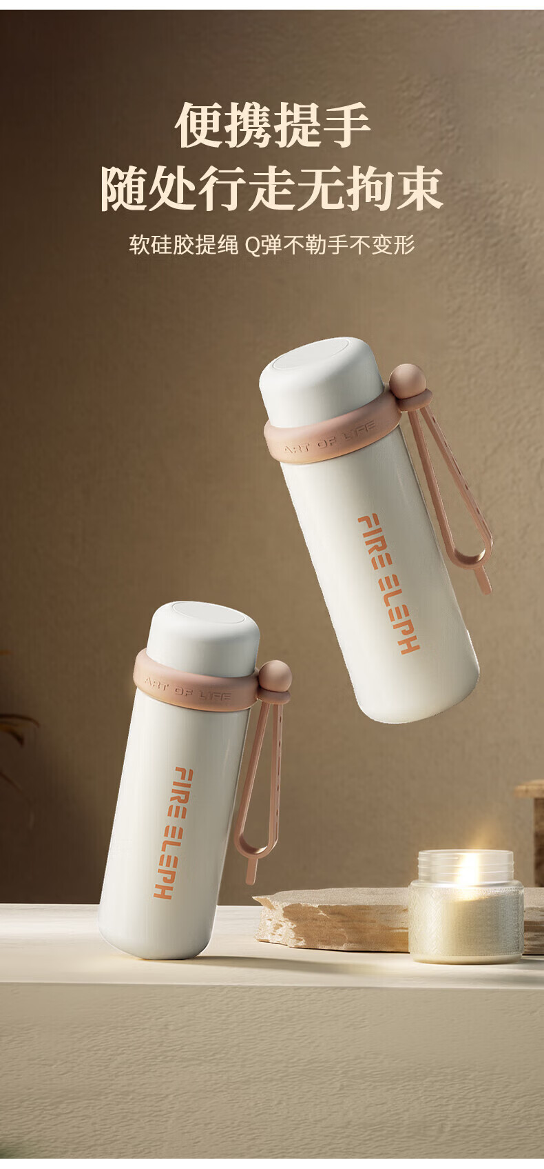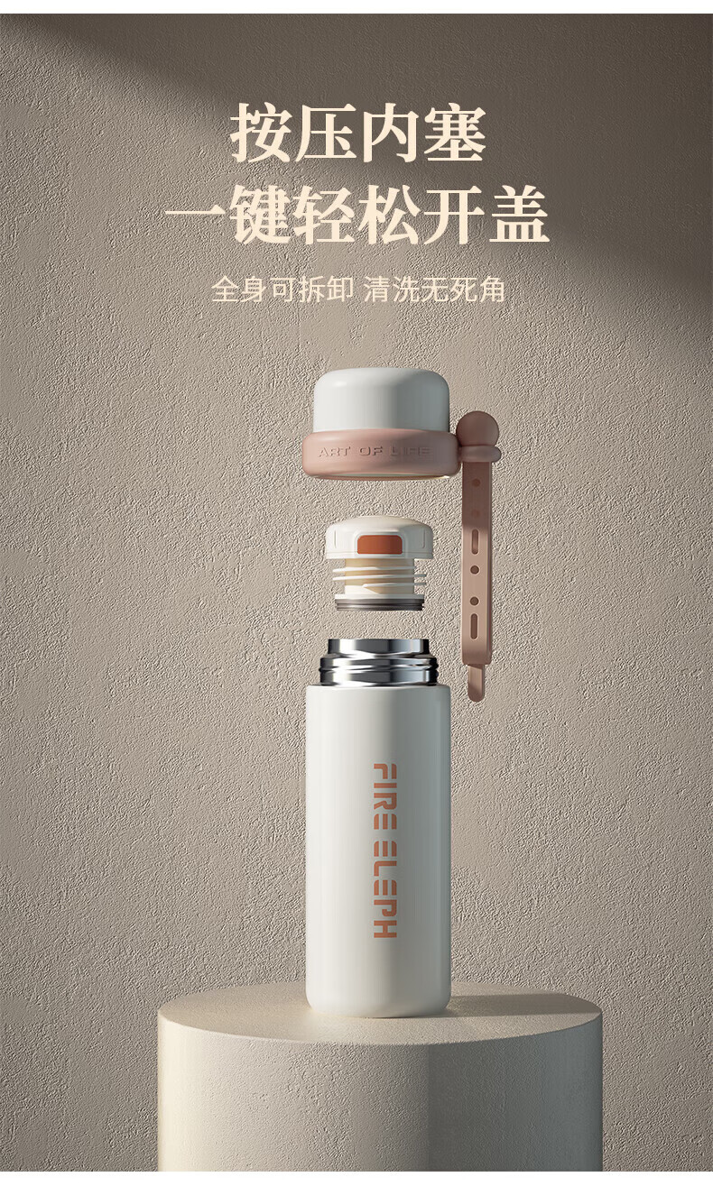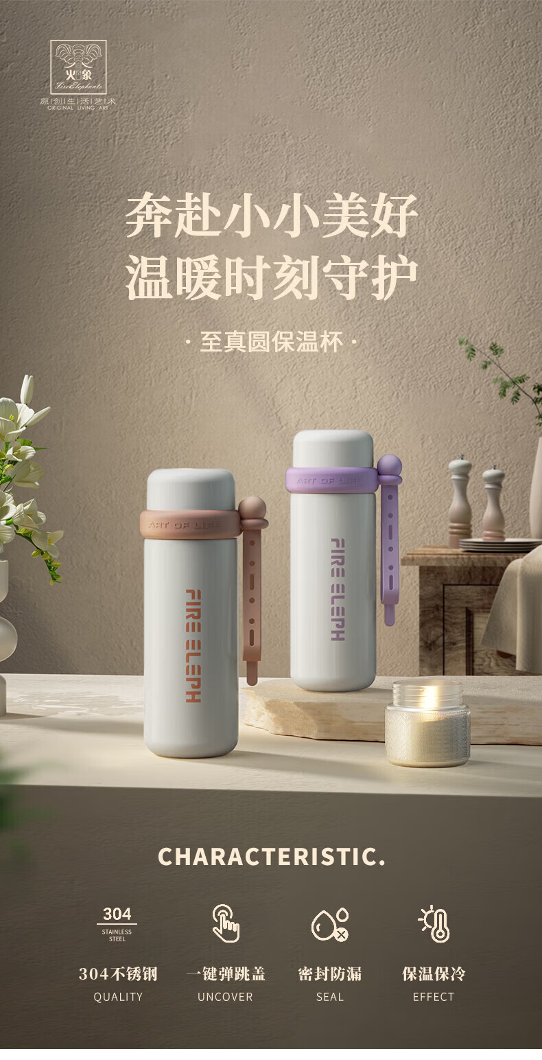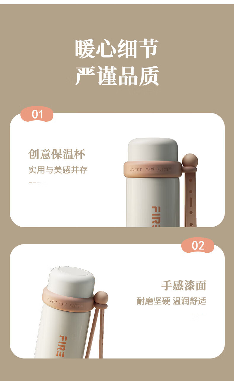 创意小水杯搭配优质食品级PP制成的杯盖;优质食品级不锈钢内胆,耐磨耐酸碱显著提 升;搭配手提带,户外出行轻松携带