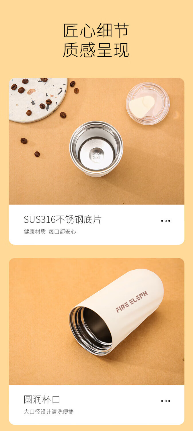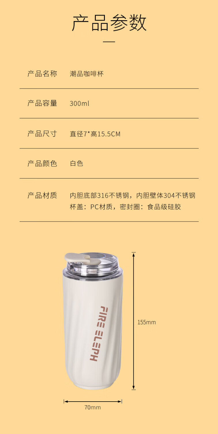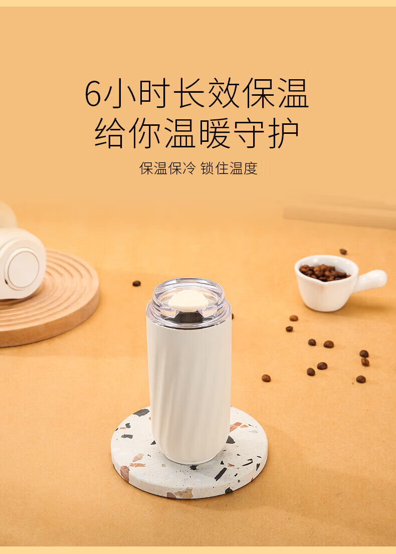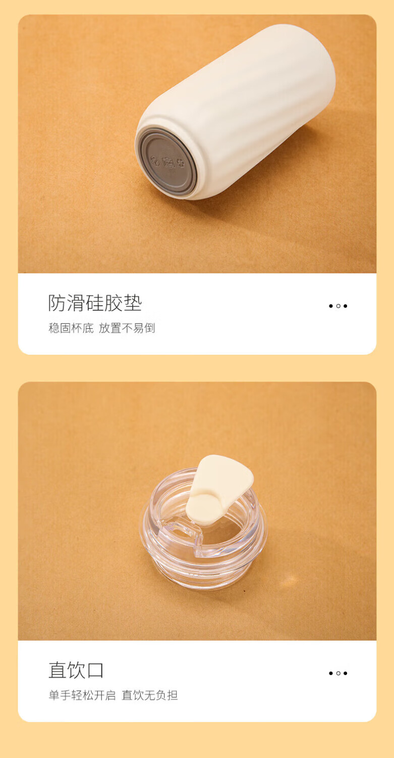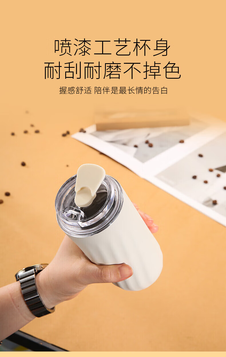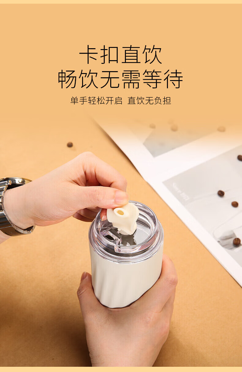 优质食品级不锈钢内胆;杯身采用喷漆工艺,耐磨,坚硬;平稳放置卡扣直饮模式,无需旋盖就可轻松畅饮