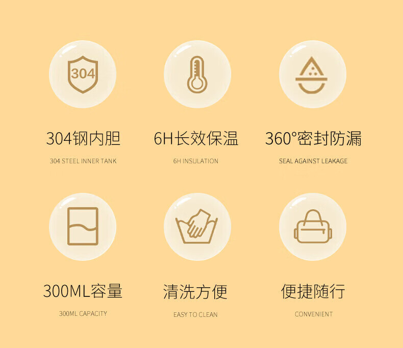 材质:内胆底片SUS316不锈钢,内胆壁体304不锈锅; 杯盖:PC材质;密封圈:硅胶(食品级)