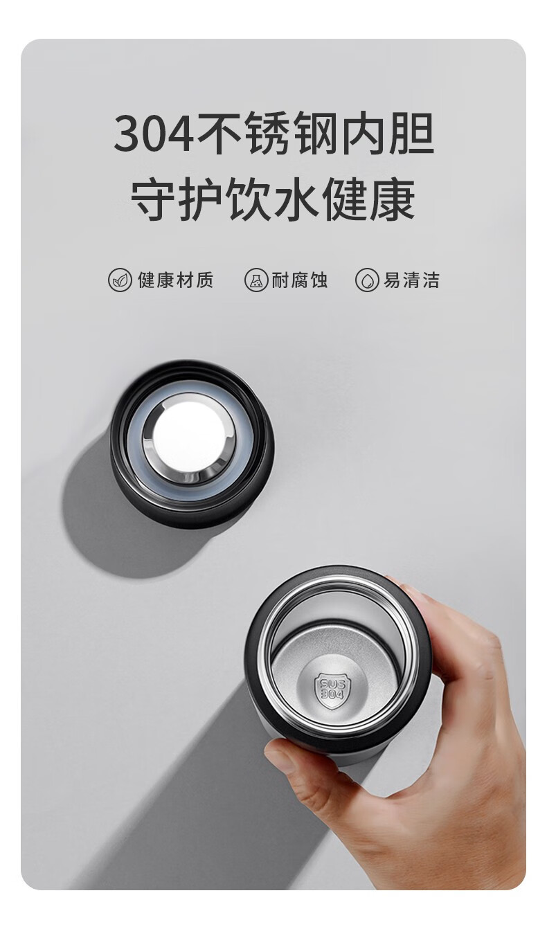 材质:壶身:内胆SUS奥氏体304不锈钢 密封圈:硅胶(食品级)杯盖:pp(食品级)