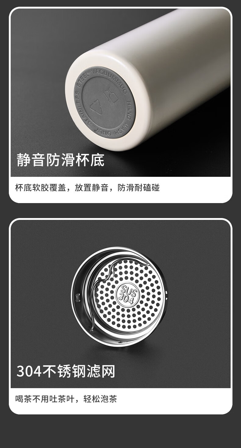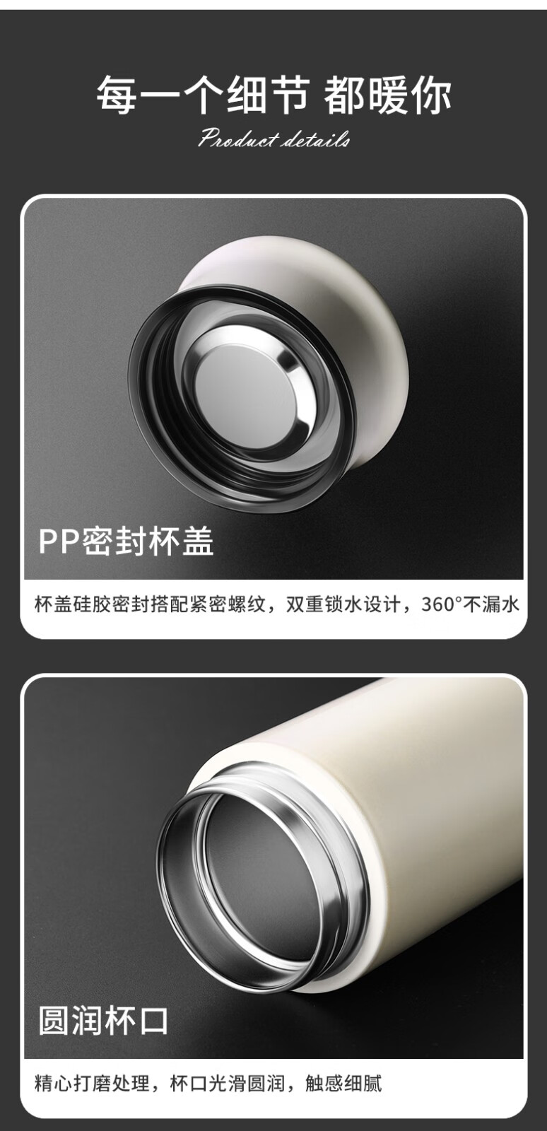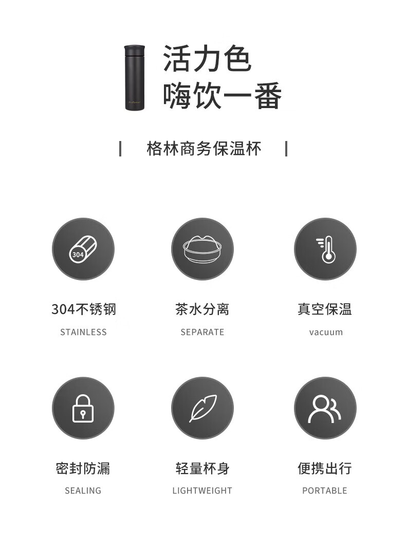 小杯身大容量,蘑菇云造型简洁、高雅。拧开方便。;采用优质SUS304食品级不锈钢内胆;杯身采用喷漆工艺,耐磨、抗震,坚硬