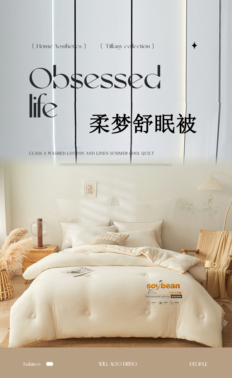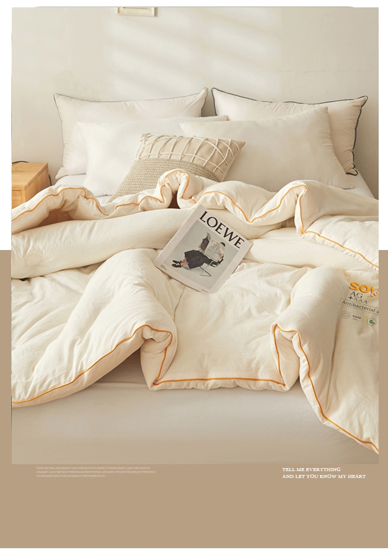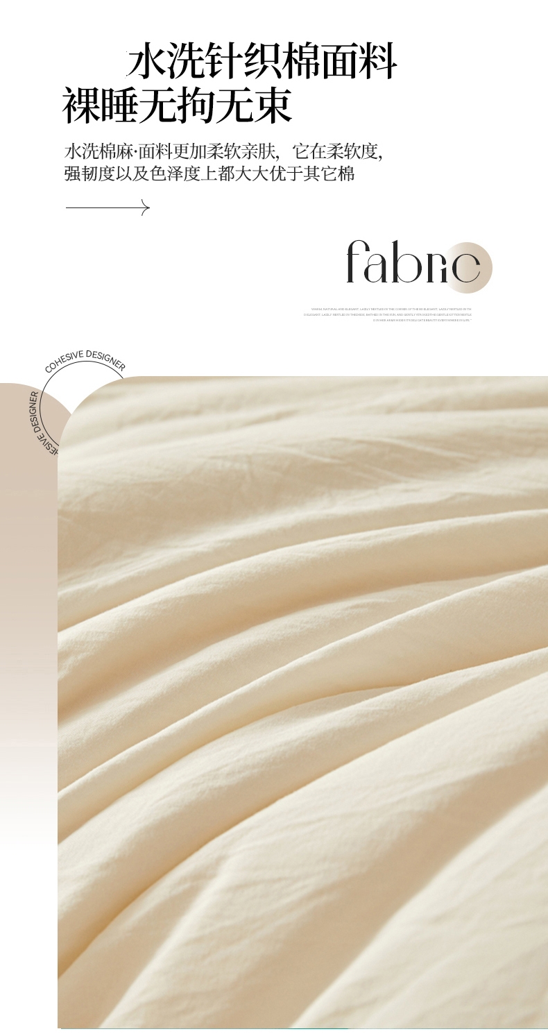 水洗针织棉面料柔软亲肤,裸睡无拘无束。;与生俱来的柔软性和舒适性,摸得到的柔软触感。;透气舒适,棉感扎实,质感细腻柔软,带给你一夜好梦。