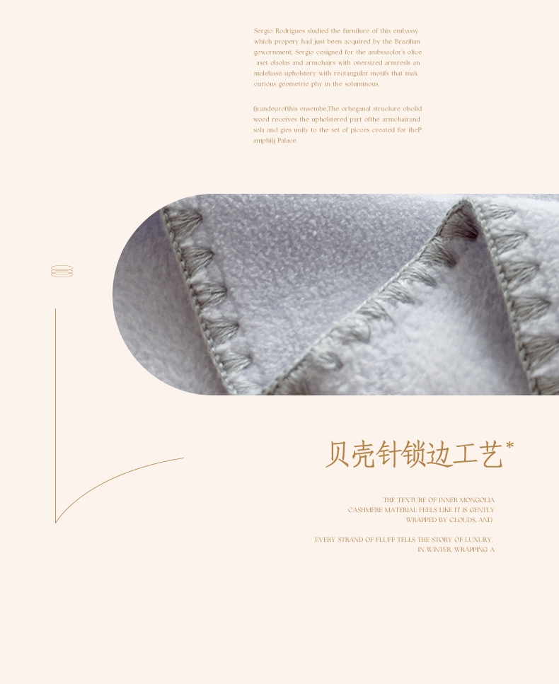獭獭绒面料纤维细腻蓬松。;触感极致柔软、顺滑亲肤。;面料柔和细腻,保暖性突出,轻盈不压身。