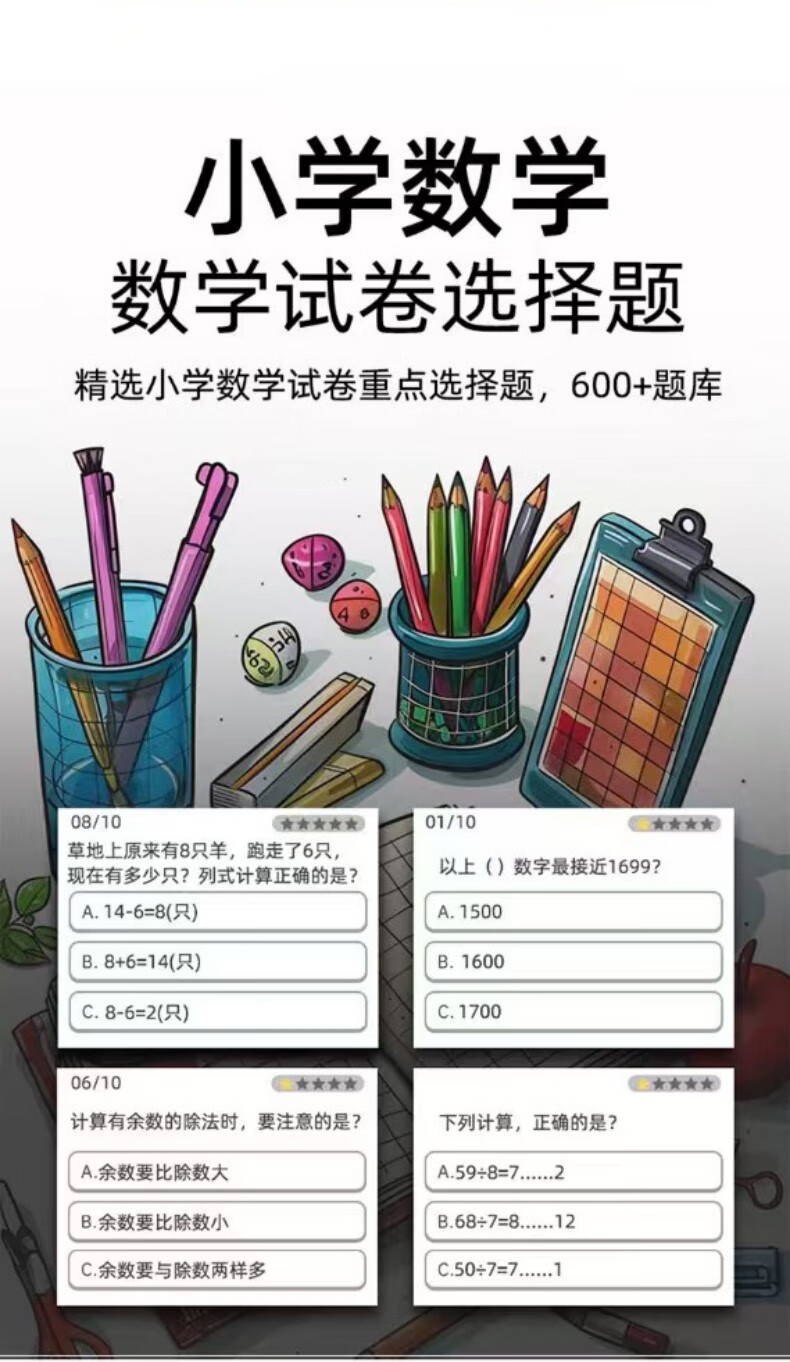 6大模式,16000+题库;多学科学习;智能出题,五星通关