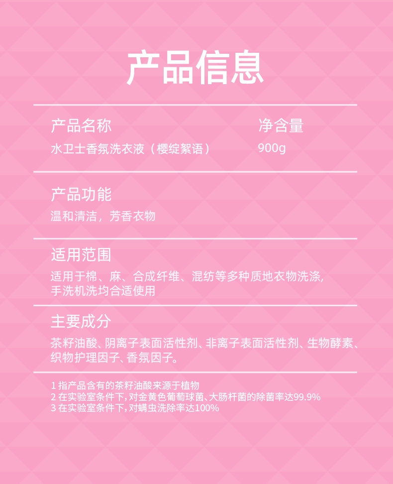 配置清单:水卫士香氛洗衣液(樱花)900g/瓶*1
