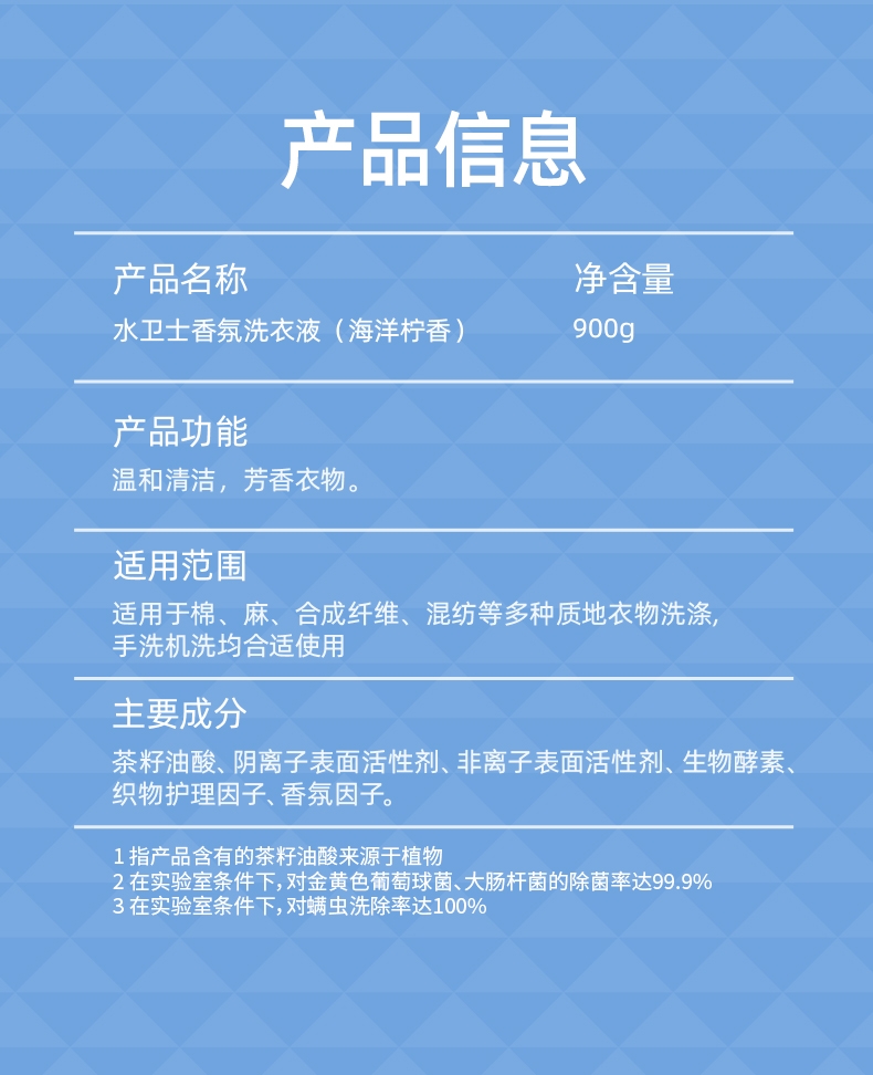配置清单:水卫士水卫士香氛洗衣液(海洋)900g/瓶*1