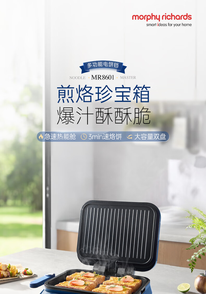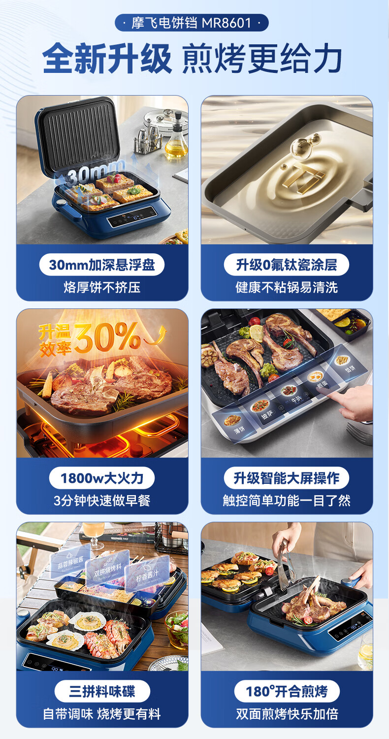 摩飞电器 多功能早餐机电饼铛双面加热家用MR8601
