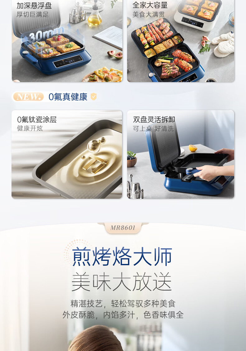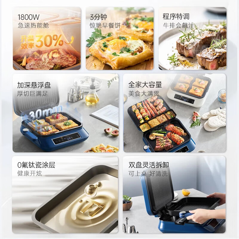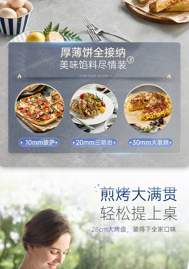 多功能菜单,春饼/薄饼;双面加热;上下盘可拆洗