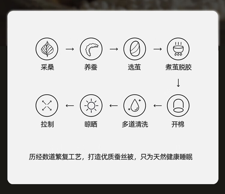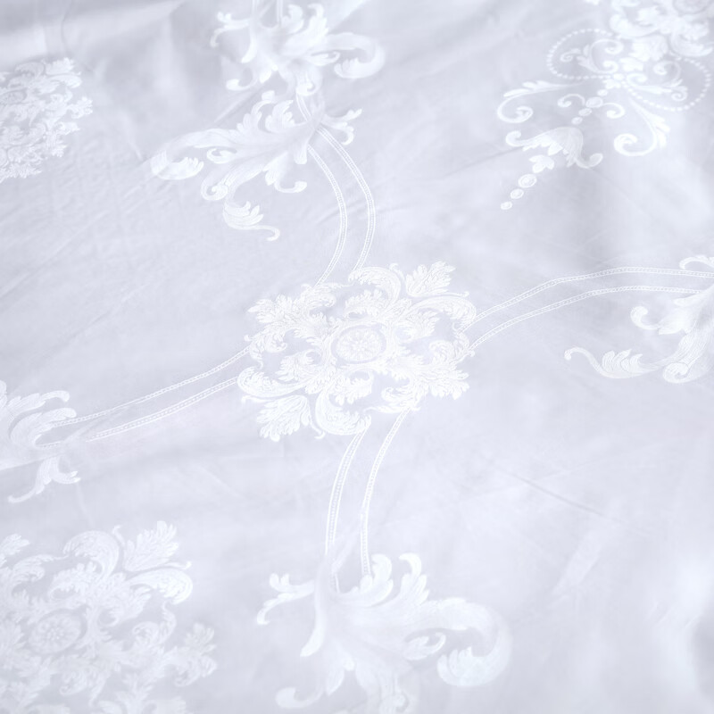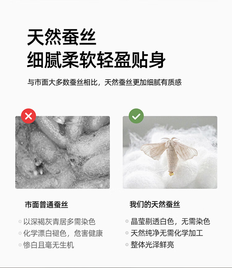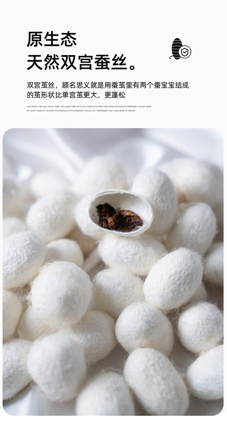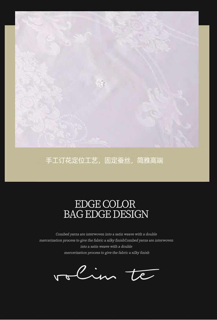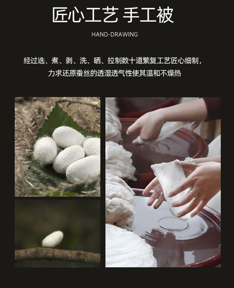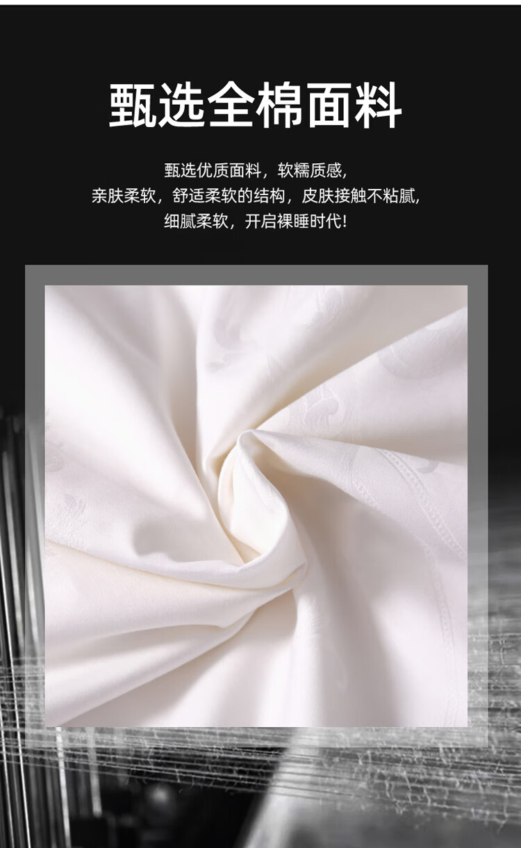 优质全棉贡缎大提花面料立体感强,透气舒适,亲肤有形;采用纯蚕丝长丝填充,轻盈透气,蓬松健康环保;有长拉链口可直观看到并可检测蚕丝,手工订花定位工艺