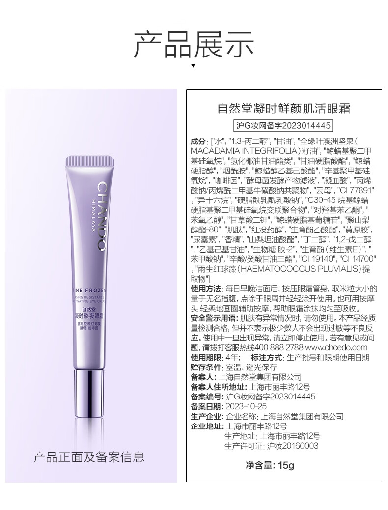 配置清单:自然堂凝时鲜颜肌活眼霜15g*1