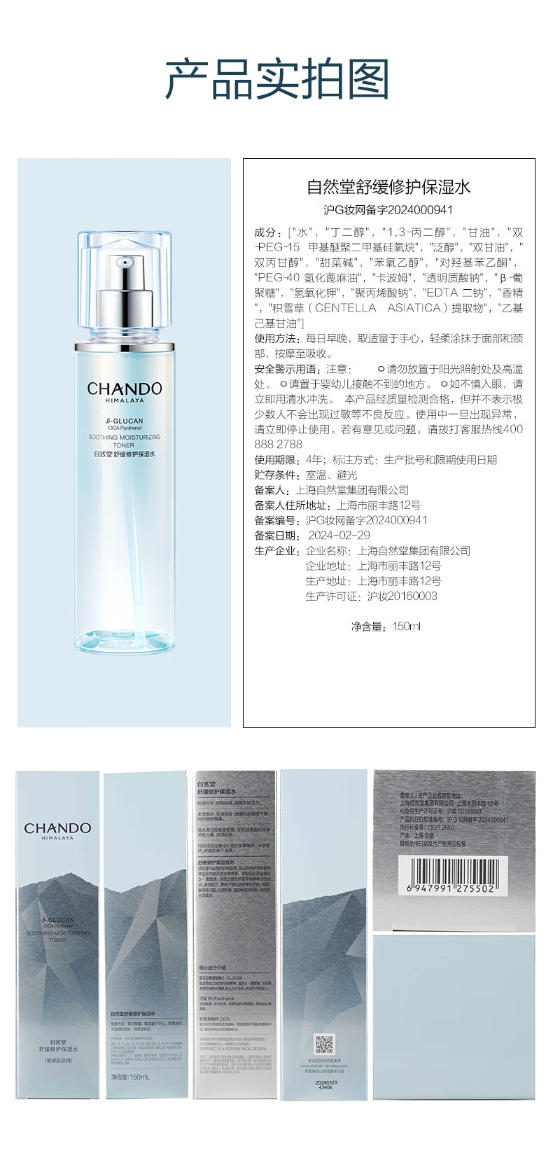 配置清单:自然堂舒缓修护保湿水150mL(敏肌可用)*1