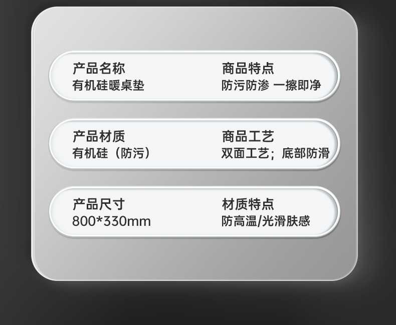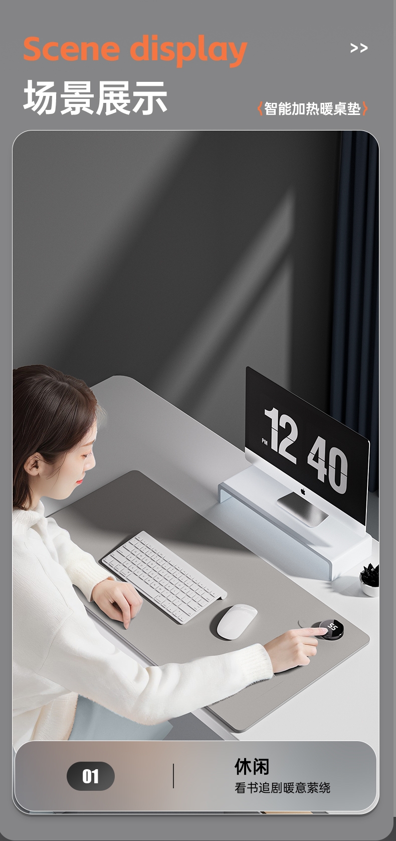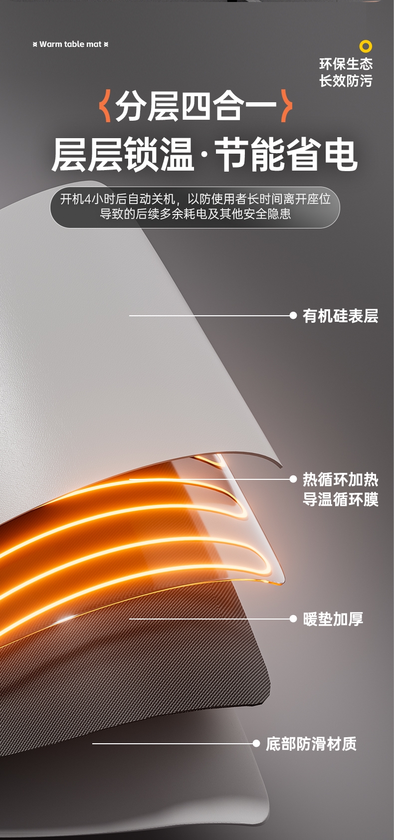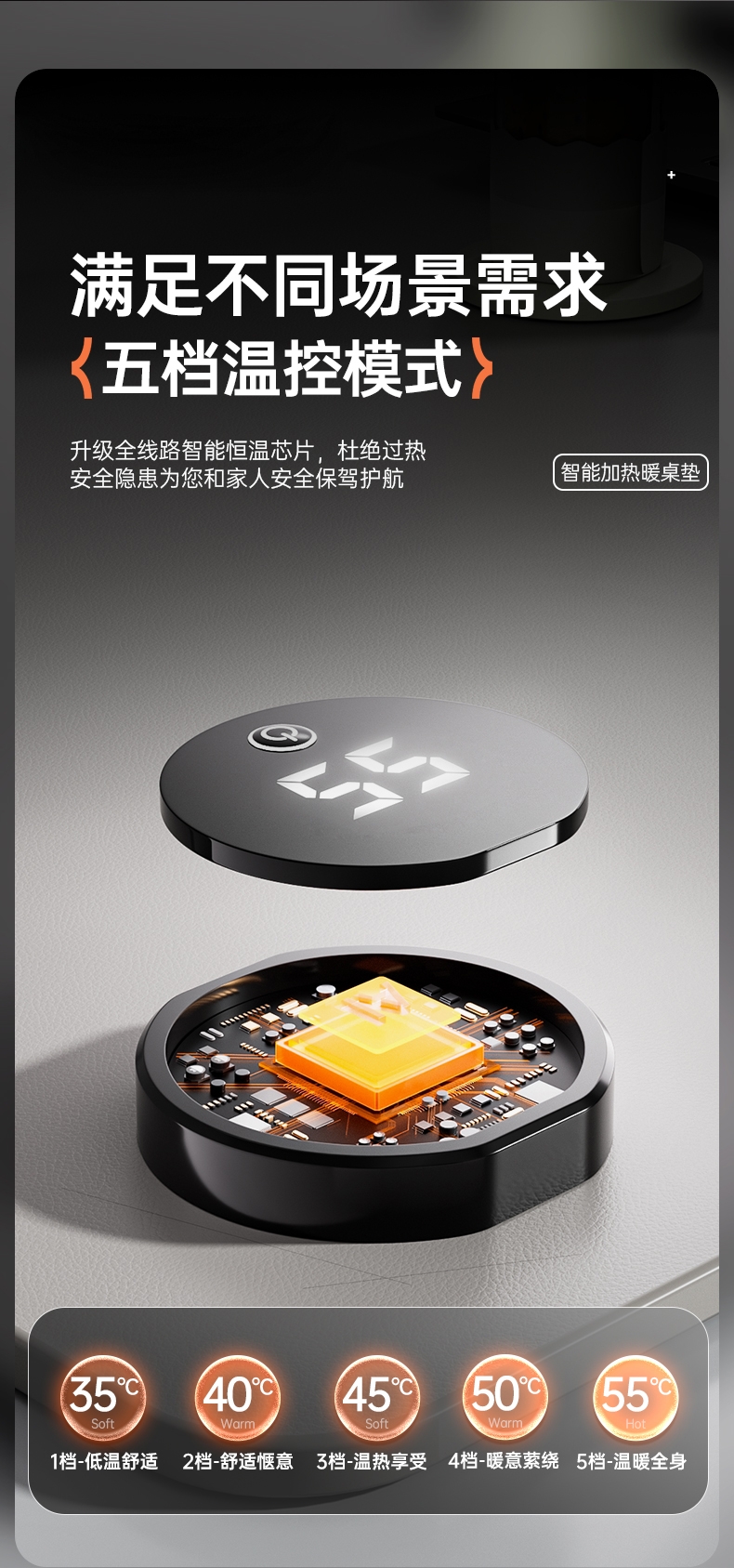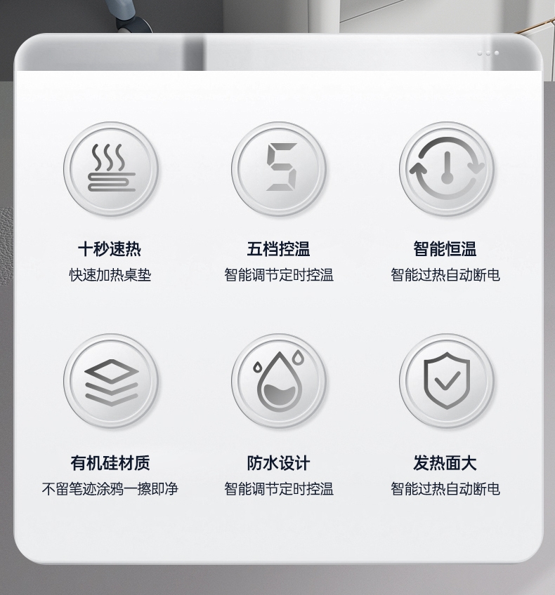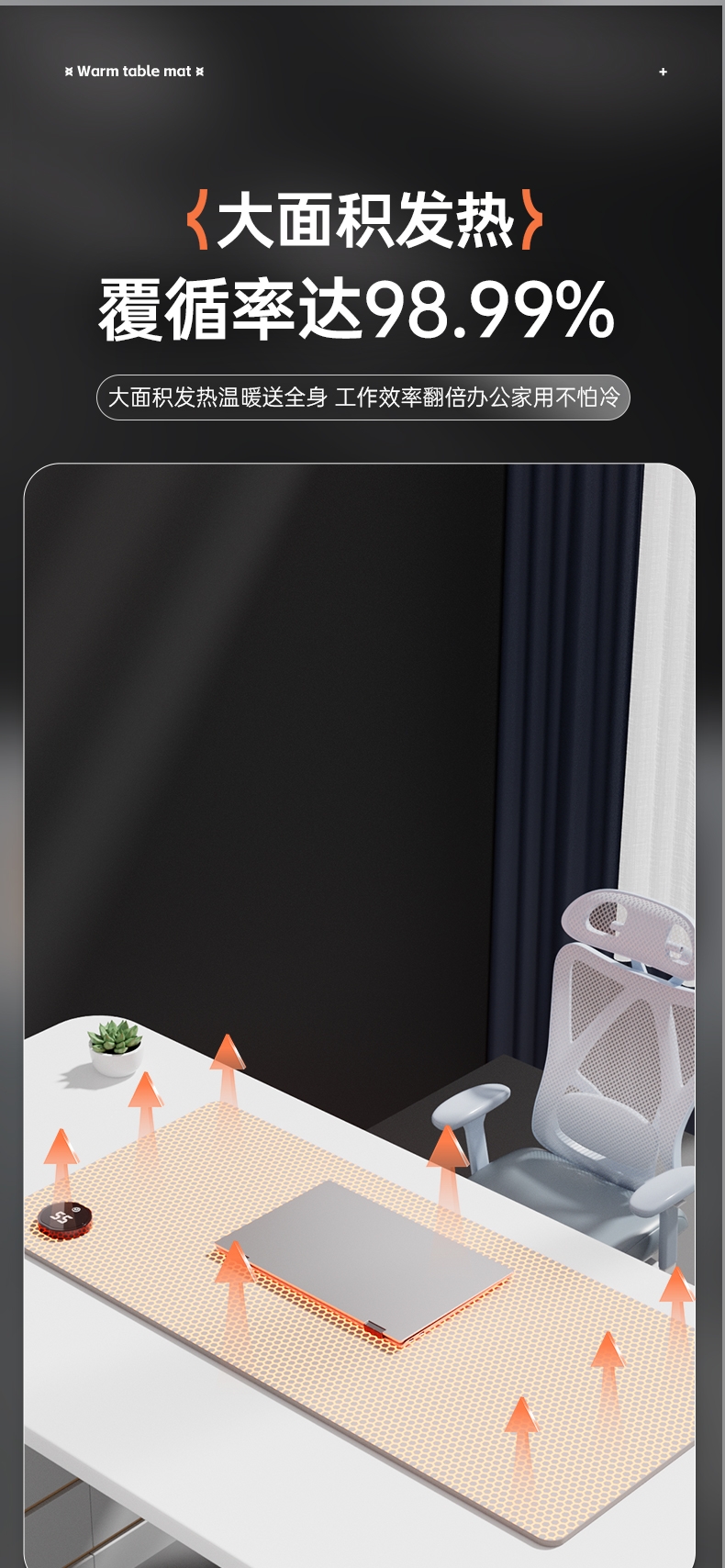 十秒速热 快速加热桌垫;五档控温;防水设计