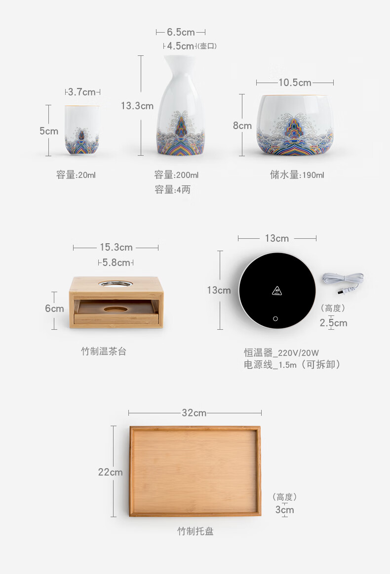 配置清单:酒壶*1,酒杯*4,酒翁*1