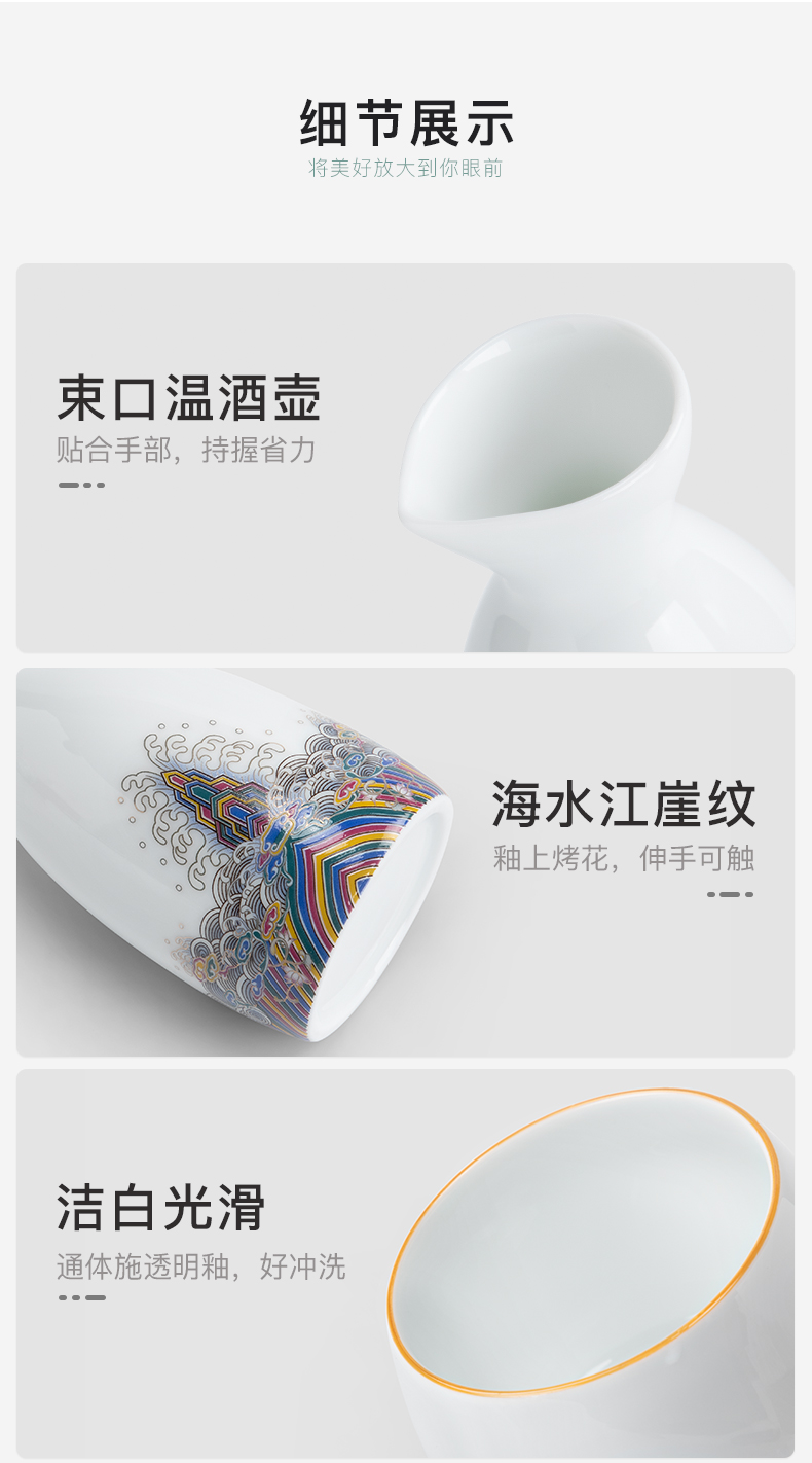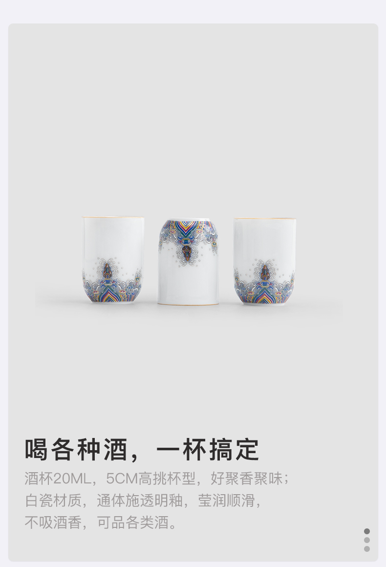 酒杯20ML,5CM高挑杯型,好聚香聚味;;白瓷材质,通体施透明釉,:莹润顺滑;釉上烤花,伸手可触,通体施透明釉,好冲洗