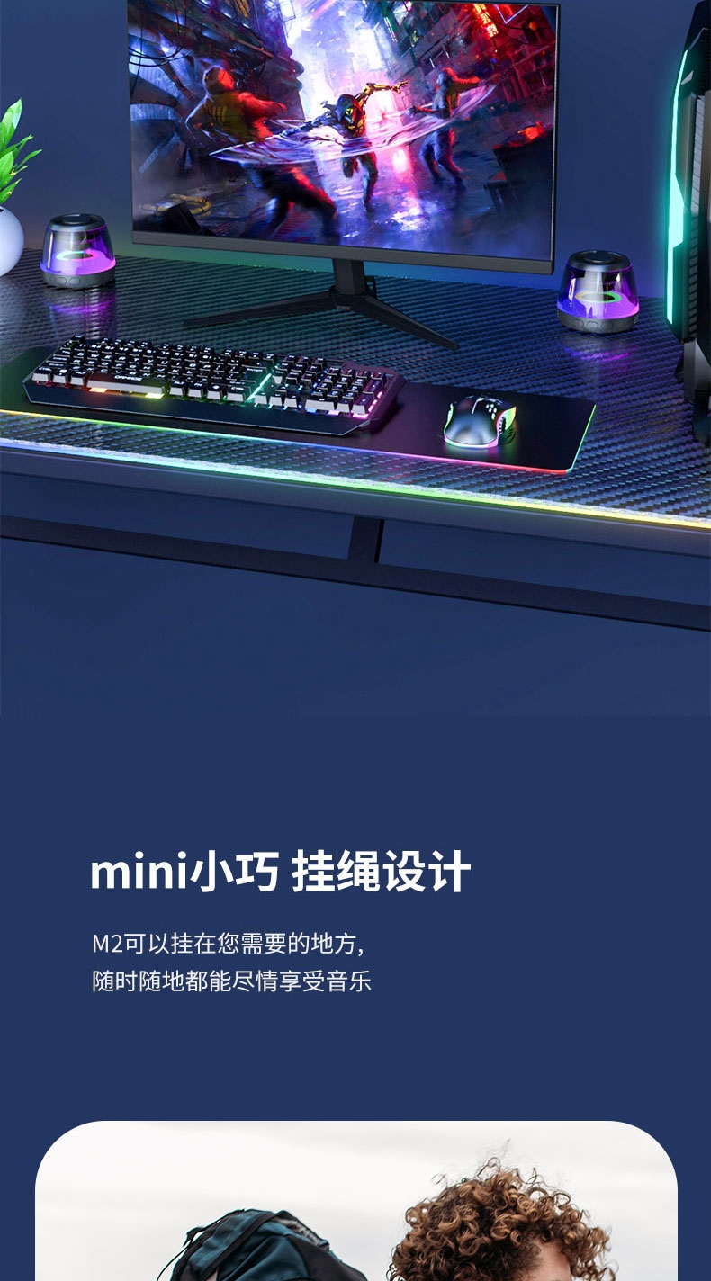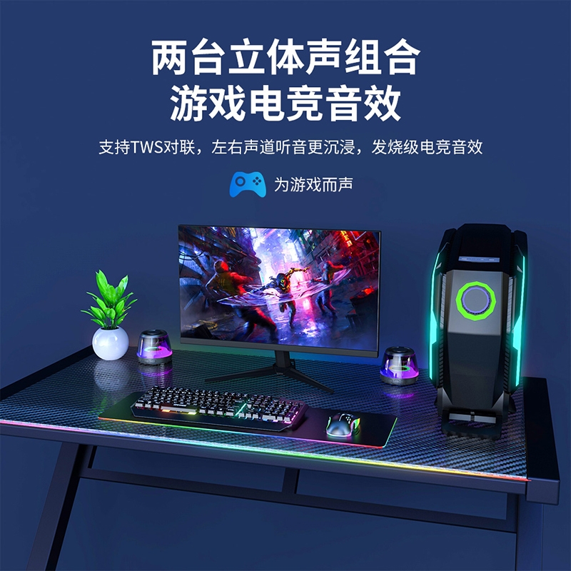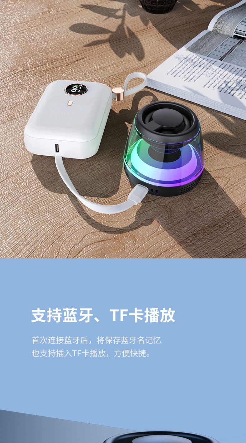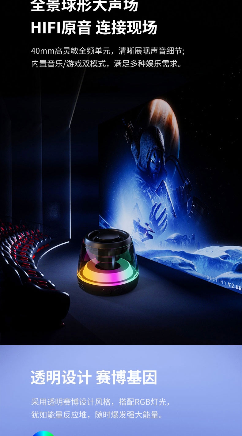 功能:插卡,语音提示,通话功能,重低音立体声,小夜灯,RGB灯效