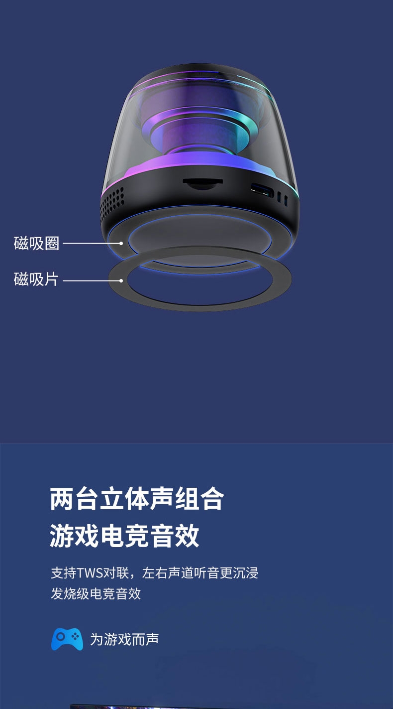 磁吸音箱;rgb氛围灯;音箱便携插卡