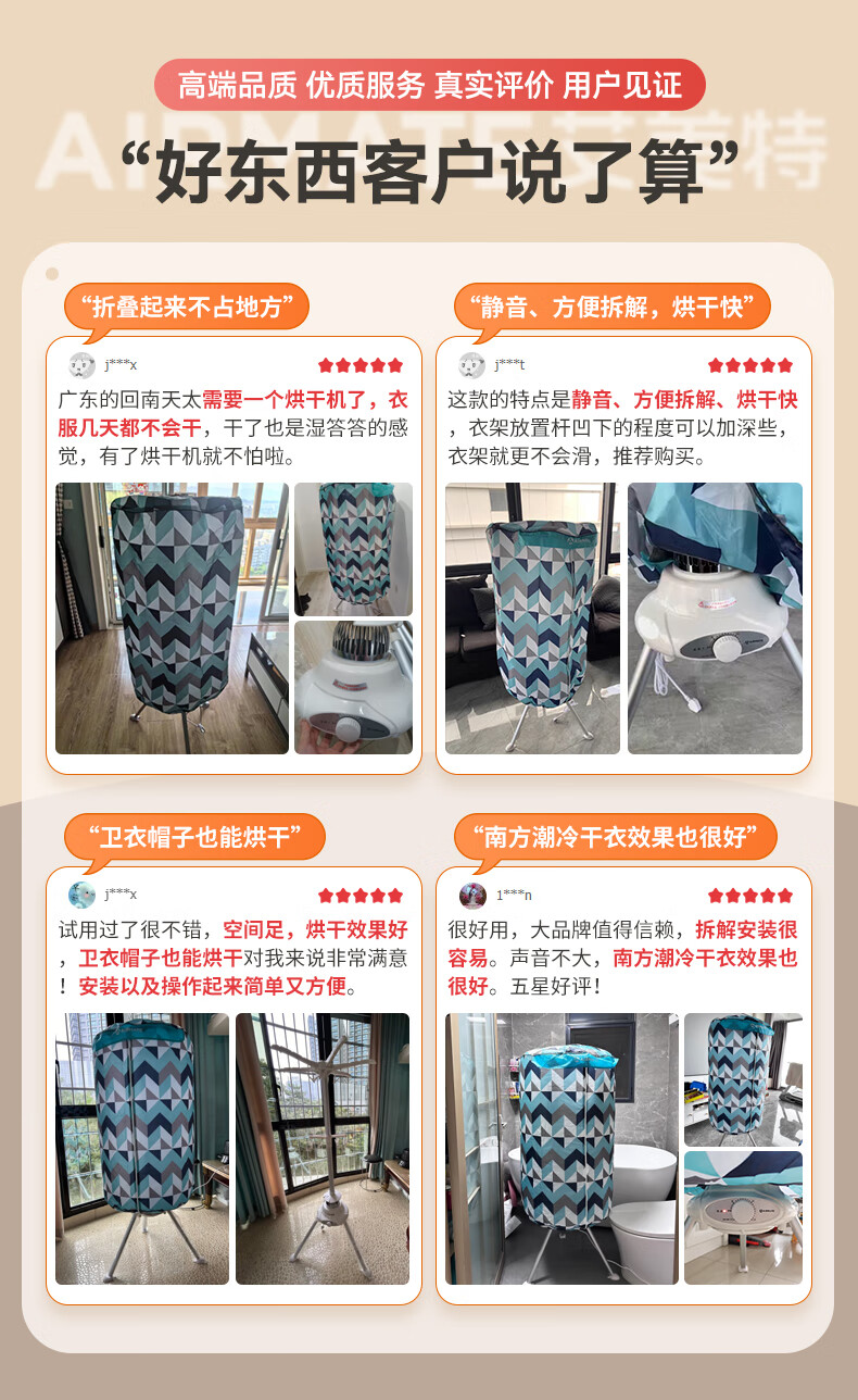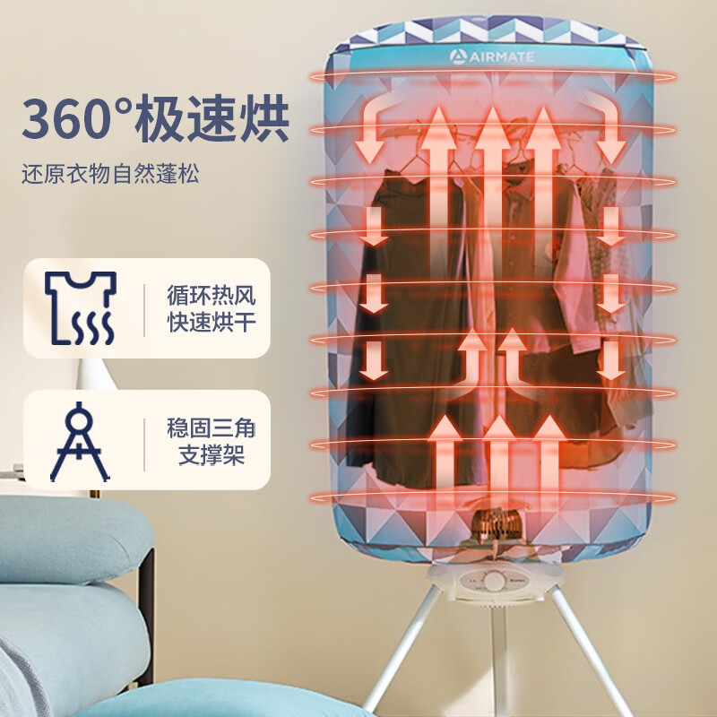 艾美特 巴氏杀菌智能定时干衣机烘干机HGY1002P-1