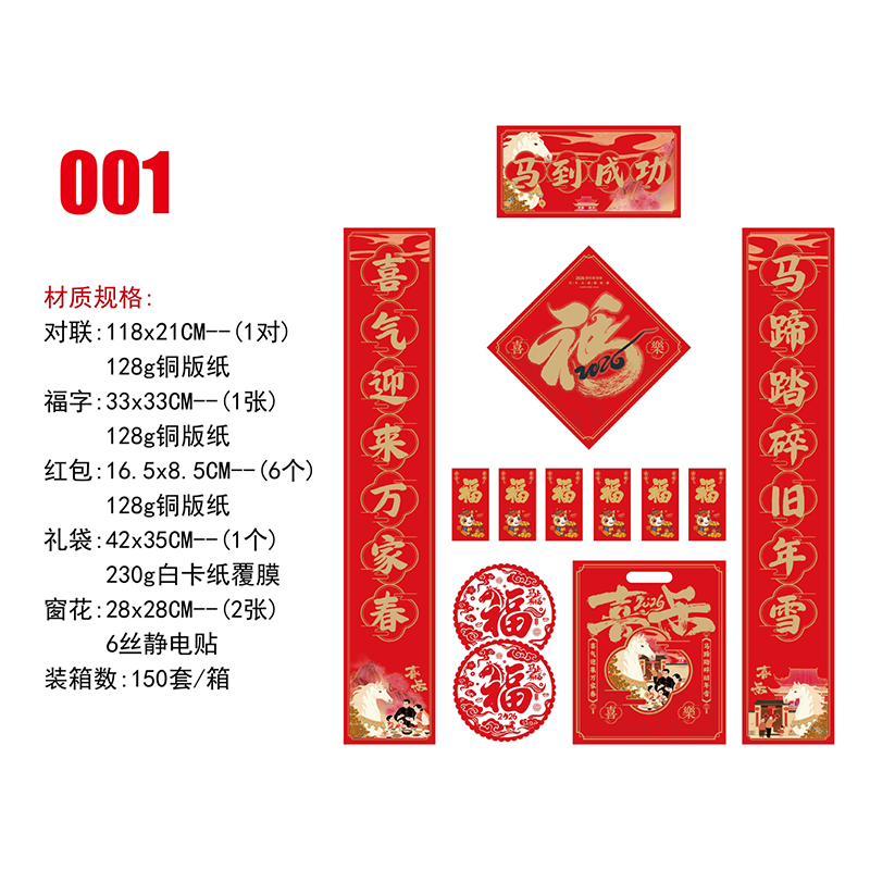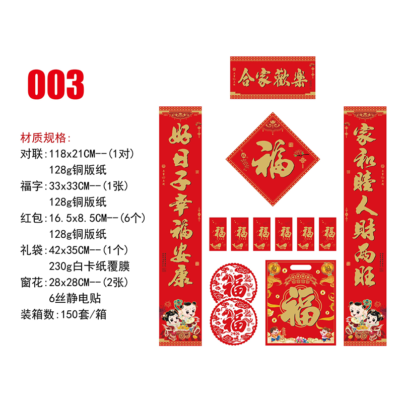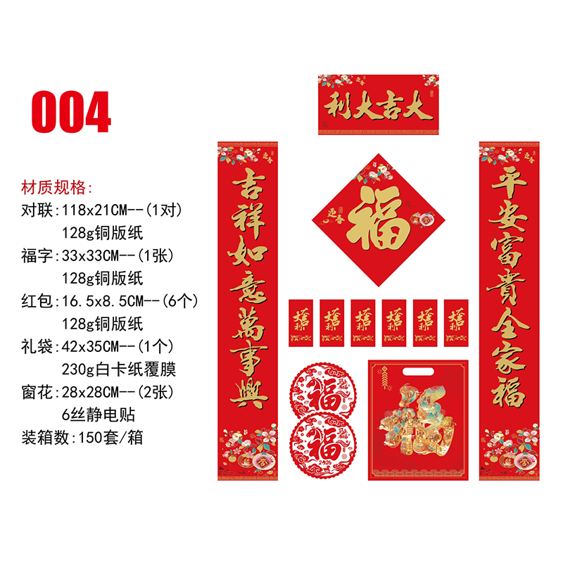 对联尺寸:118x21CM--(1对)128g铜版纸