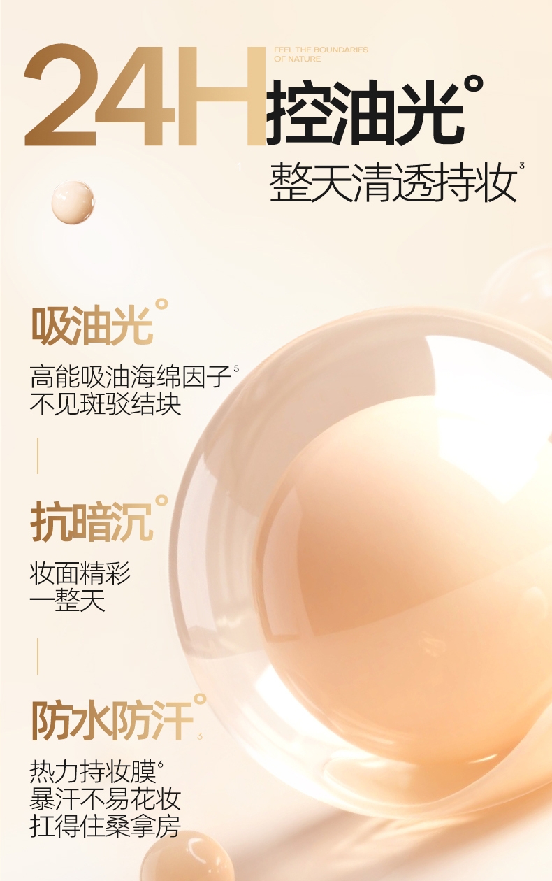 一盒多用,1盒=底妆+定妆+补妆;24h控油光,整天清透持妆;细腻0粉感,服帖不卡纹