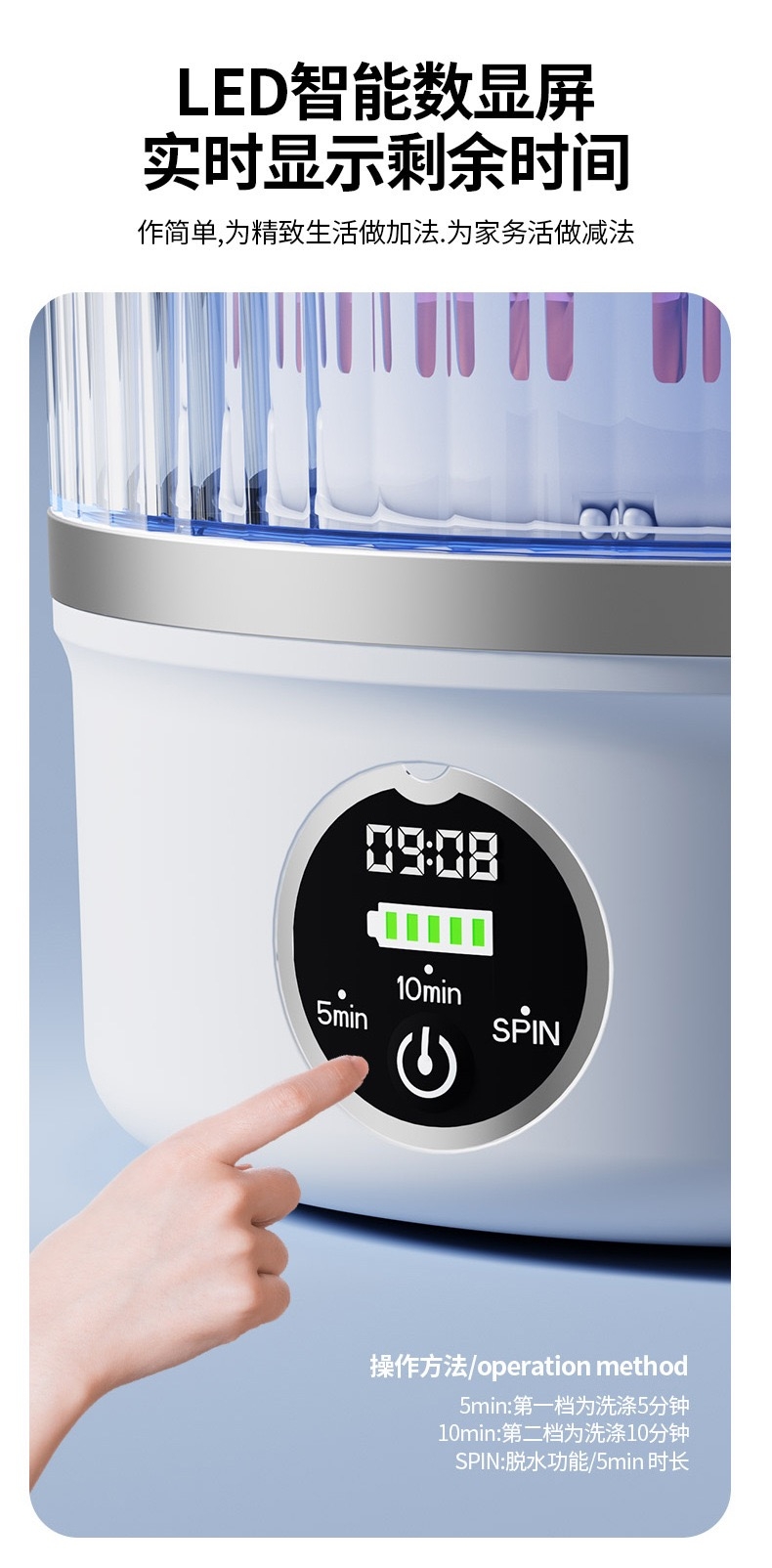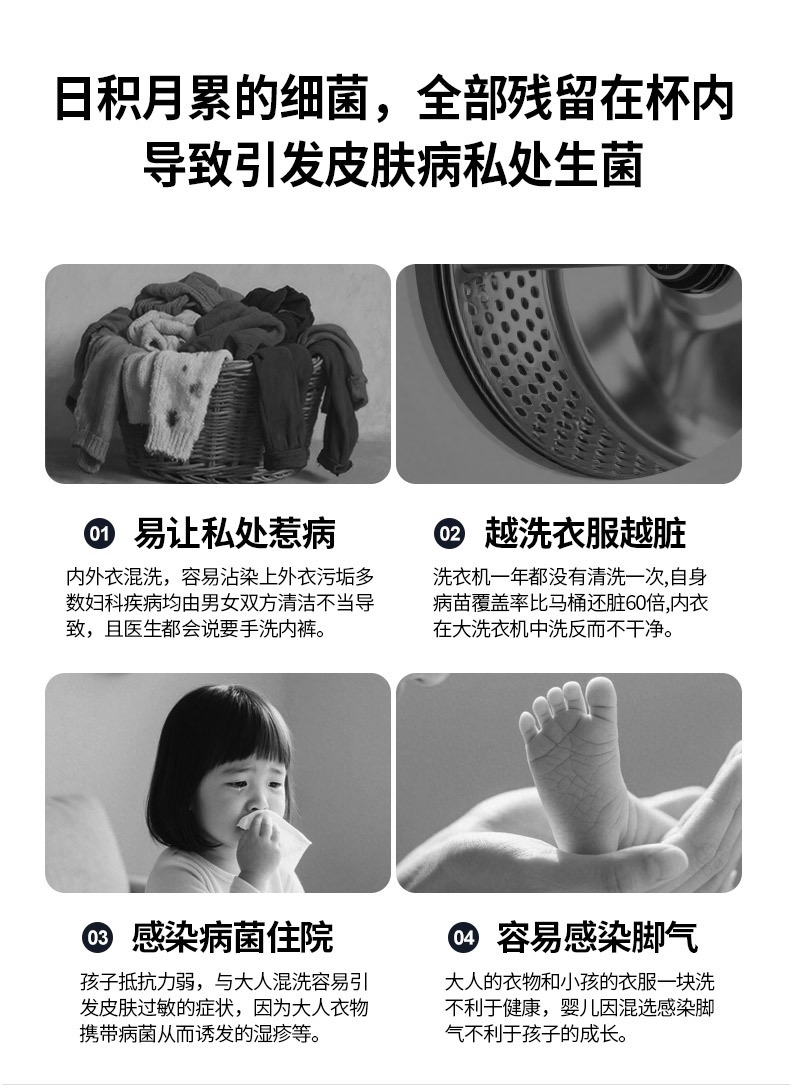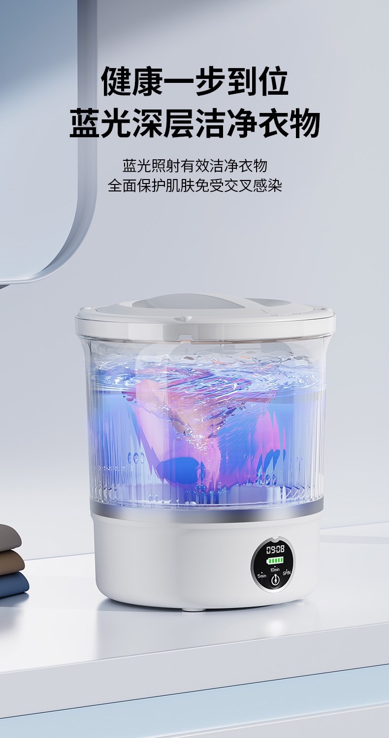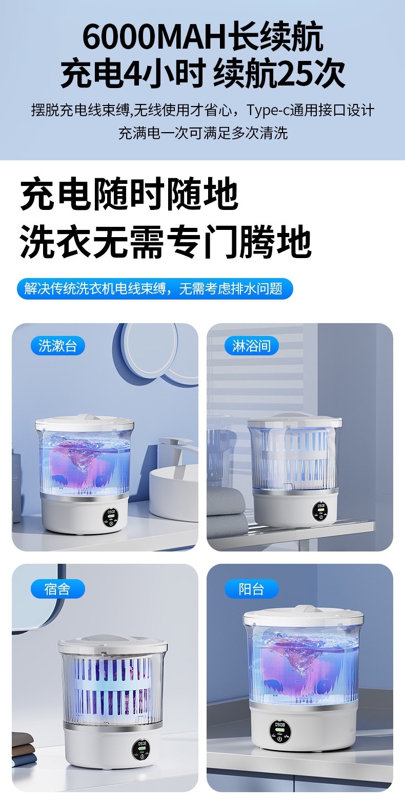 无线便携3L大容量电池续航久;蓝光杀菌深层清洗袜子内衣内裤小孩围巾等等;免插电免安装洁净升级智能洗护
