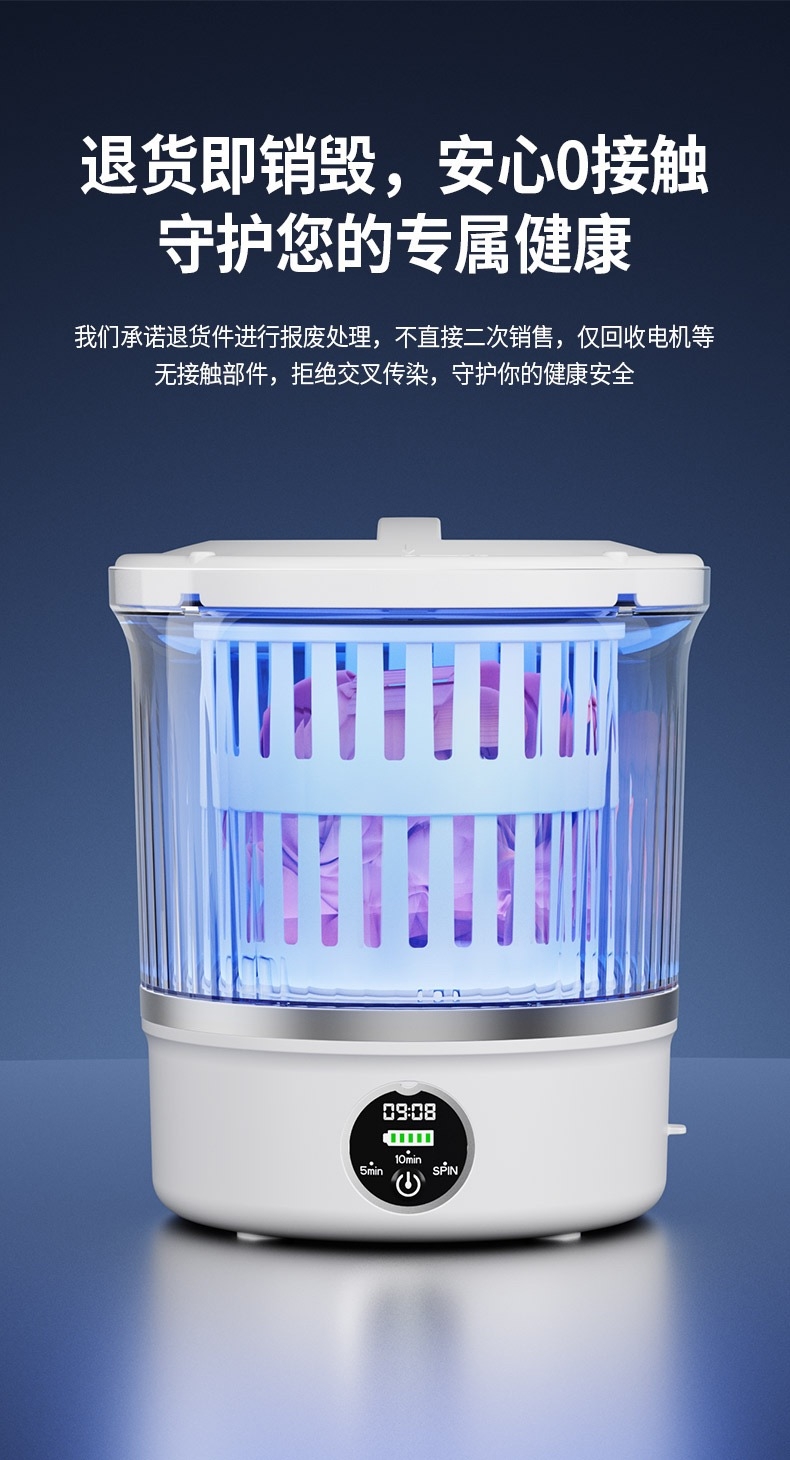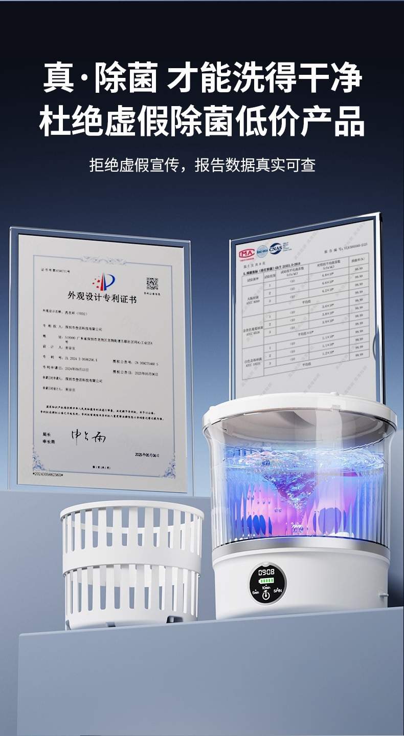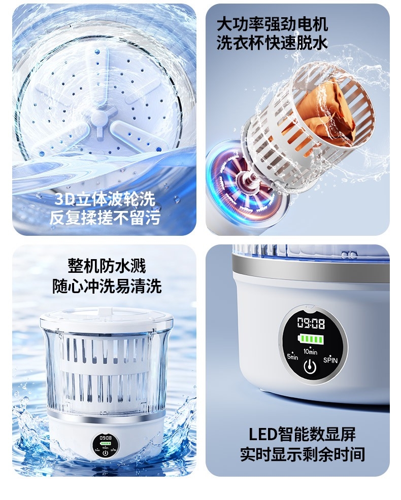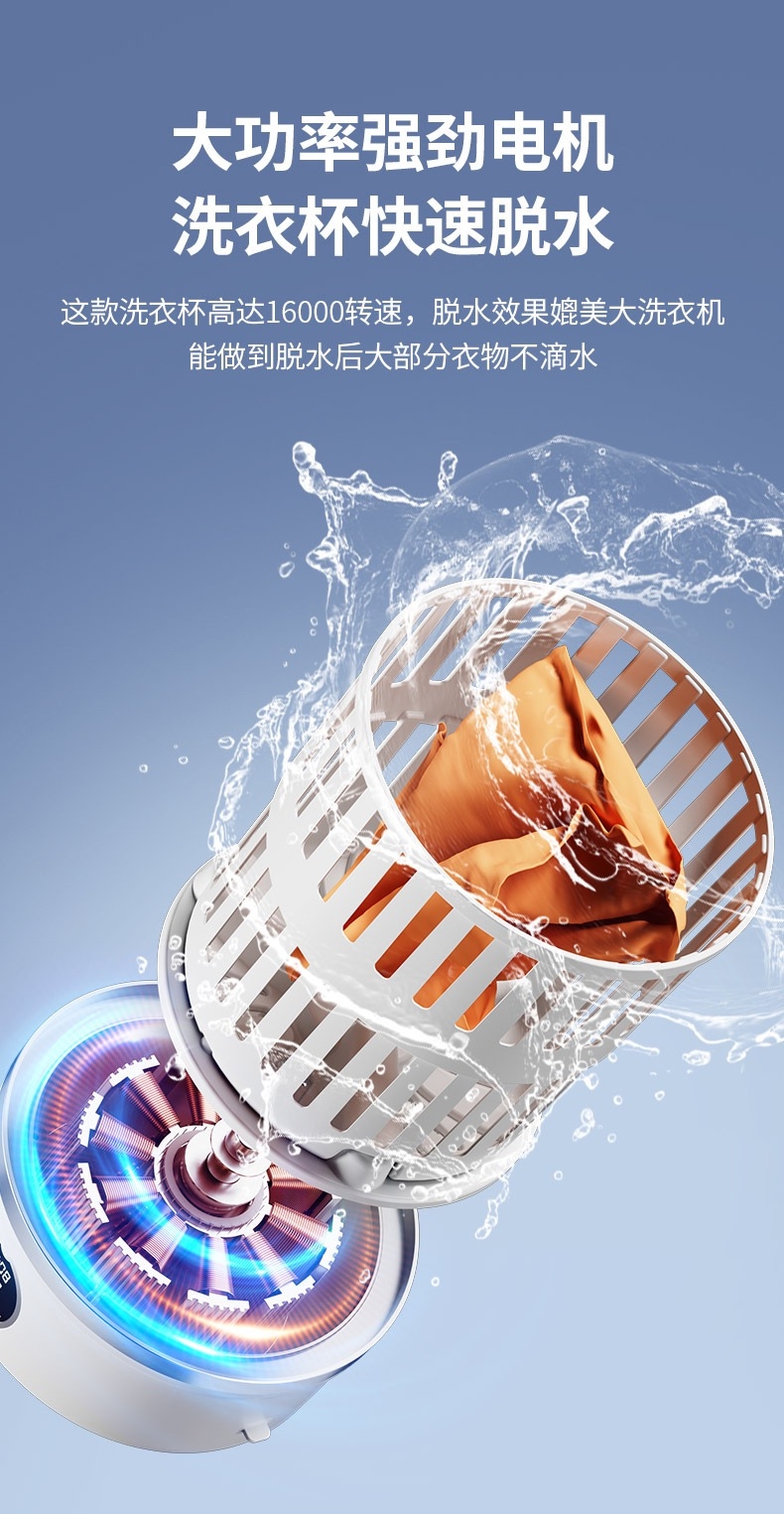 无线便携3L大容量电池续航久;蓝光杀菌深层清洗袜子内衣内裤小孩围巾等等;免插电免安装洁净升级智能洗护