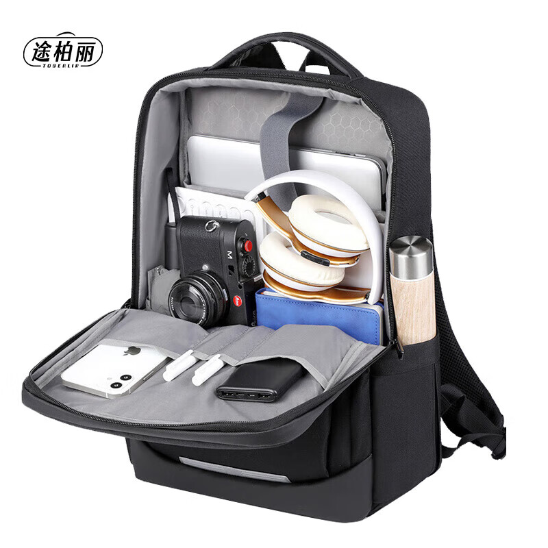 耐磨防水面料,不易起皱,易打理; 弧形肩带 干爽舒适;增加拉杆箱固定带,可挂靠设计